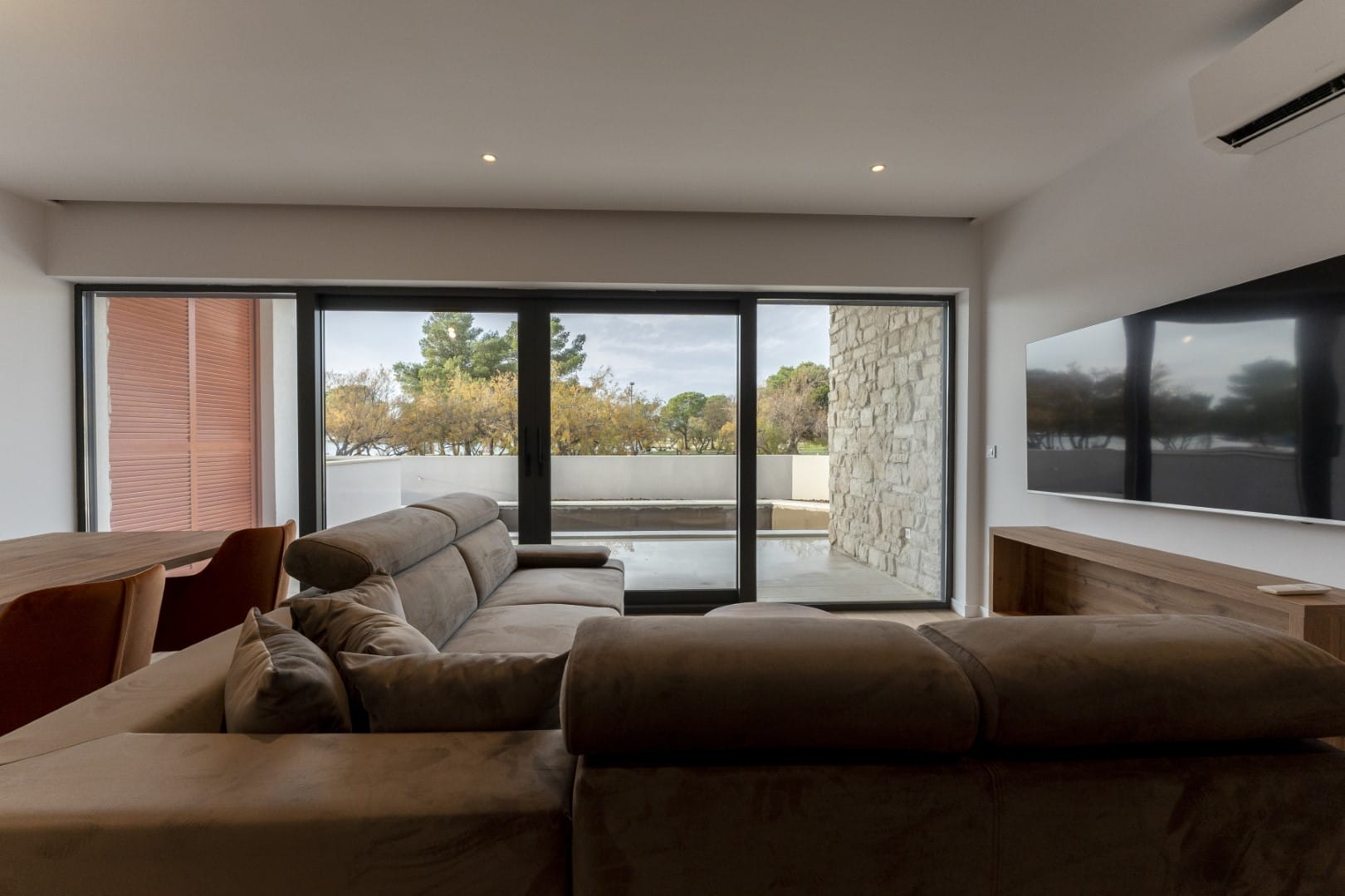 Предлаганият апартамент е изключителна оферта за хора, които желаят да се насладят на близостта до морето в модерна и комфортна обстановка. Разположен на първа линия до морето, този просторен имот е напълно обзаведен, което улеснява незабавното настаняване. От прозорците му се открива живописна гледка към Адриатика, а жителите могат да се наслаждават на чара на крайморския начин на живот. Сградата, характеризираща се с модерна архитектура, съдържа само шест апартамента, което създава уютна атмосфера. Предимство на този имот е също достъпът до градинка и отопляем басейн, които могат да бъдат идеално място за релакс в горещите дни.