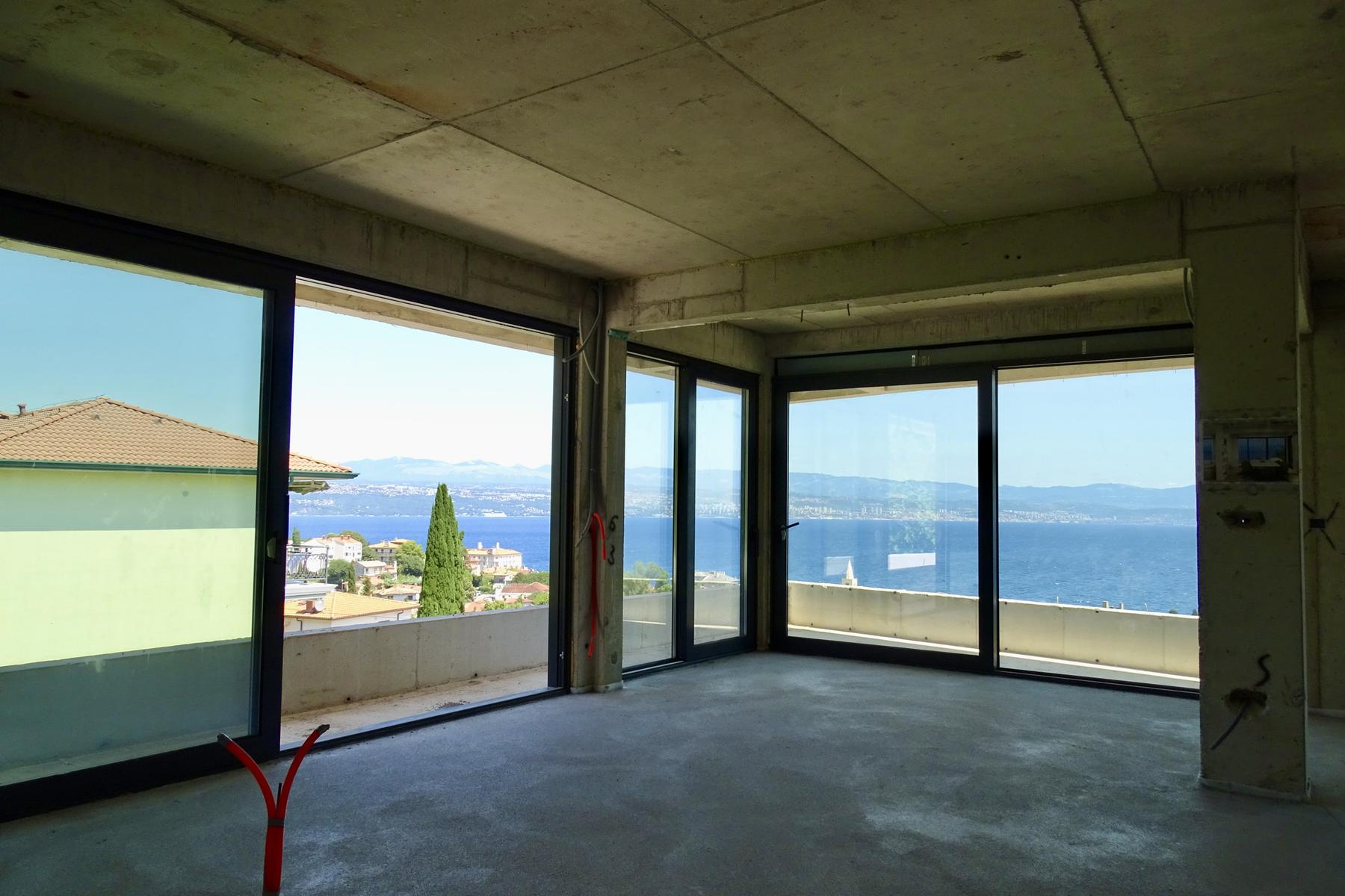Терасата е важен елемент от целия имот, тъй като осигурява място за отдих на открито с красива гледка към морето. Сградата се намира в атрактивен район на Ловран, което гарантира спокойствие и живописна обстановка, както и близост до градската инфраструктура. Този имот е предложение за хората, които търсят функционален и комфортен апартамент в очарователна локация.