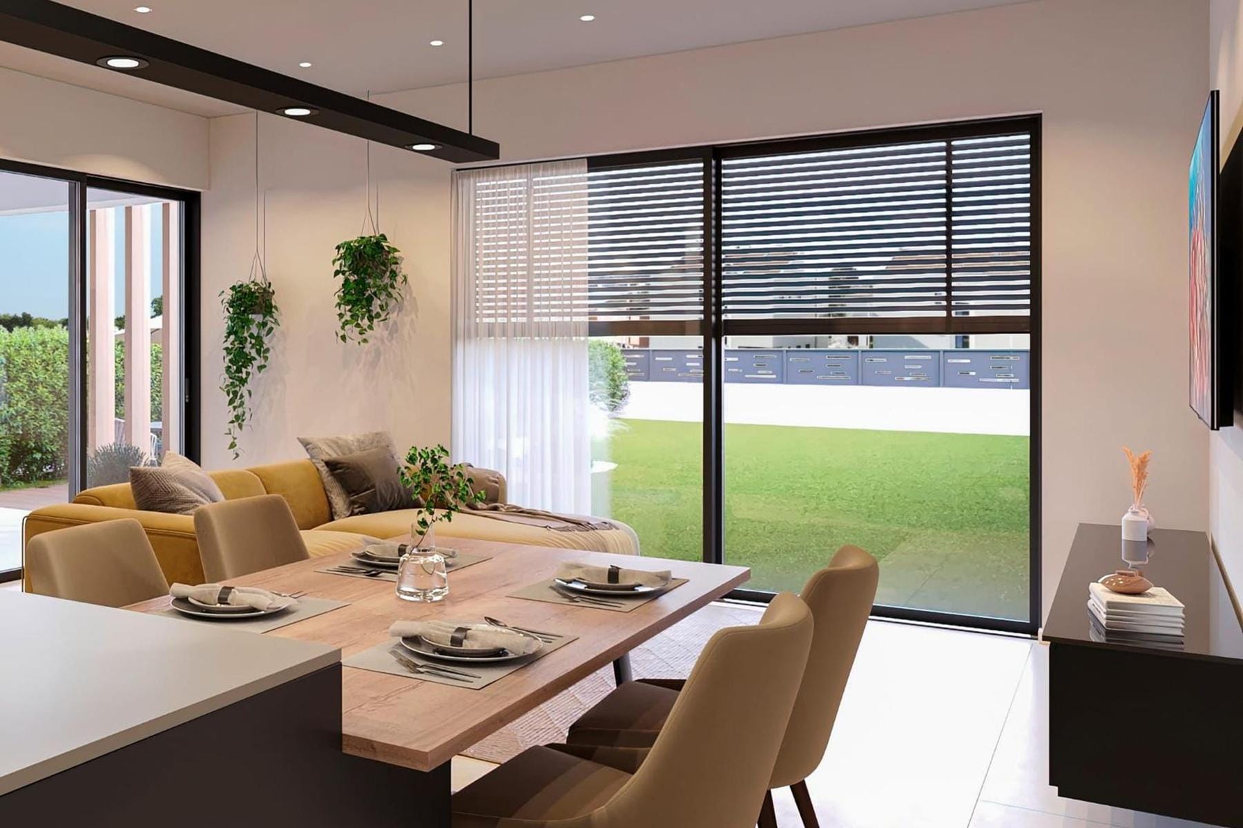 Разпределението на апартамента благоприятства свободното функциониране и осигурява много естествена светлина. Кухнята е оборудвана с висококласни уреди, гарантиращи удобство при приготвяне на храната. Просторната дневна с трапезария е комфортно място за срещи и отдих. Спалните осигуряват уединение и са идеално място за почивка след наситен ден. Градината около имота предоставя отлична възможност за прекарване на време на открито и създаване на собствен зелен кът. Цялото жилище е поддържано в много висок стандарт, а локацията позволява да се наслаждавате на чара на морския климат директно от входната врата.