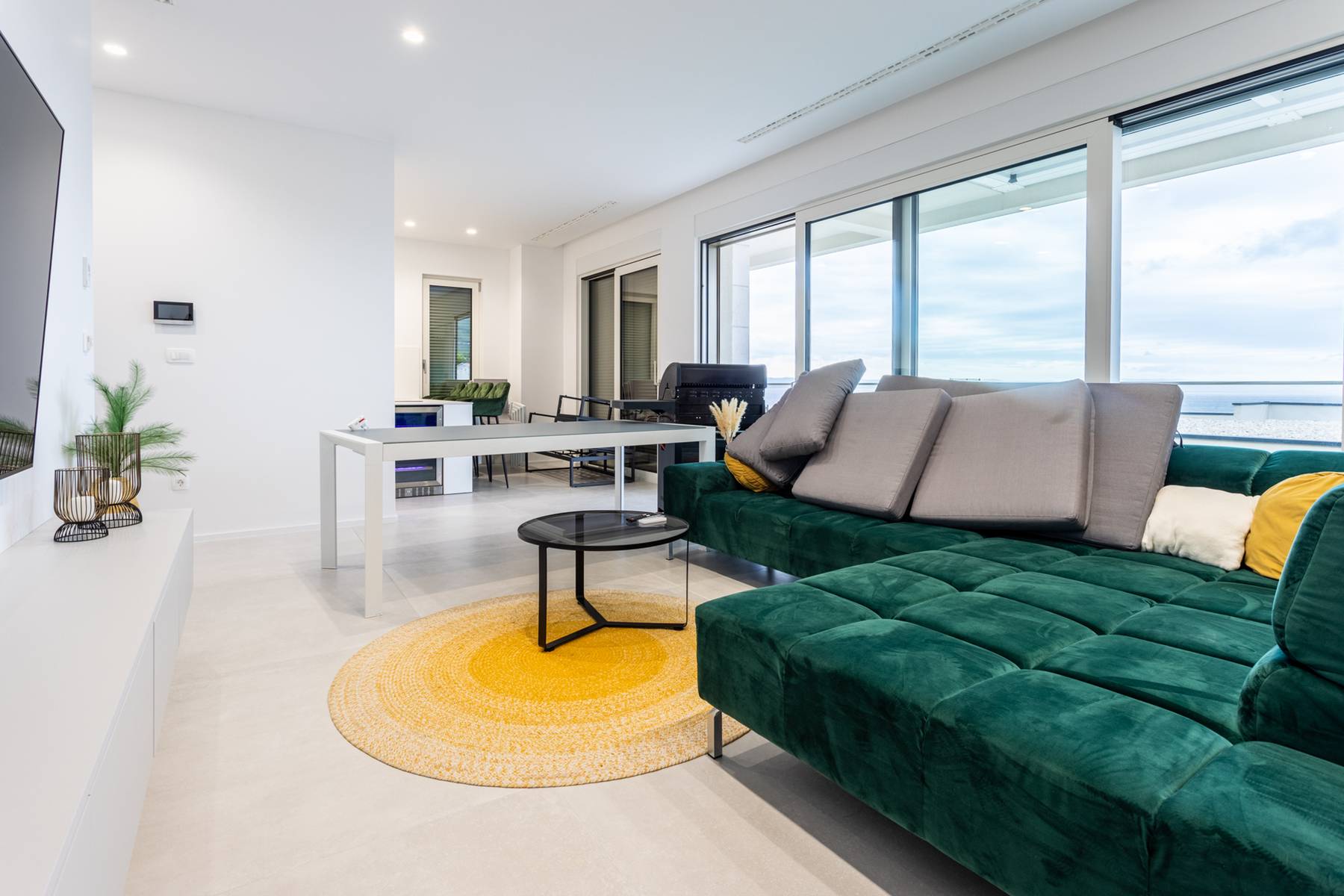 Предлаганият имот представлява изключително жилищно пространство, разположено в популярен морски курорт на юг от Хърватия. Комфортният апартамент се намира на последния етаж на модерен жилищен блок с асансьор, което осигурява удобство и уединение. Сградата гарантира достъп до апартамента директно от гаража, което е рядко срещано удобство в този район. Цялото пространство е поддържано в отлично състояние, а аранжировката му позволява комфортен живот за човек или семейство, които ценят спокойствието и естетиката.