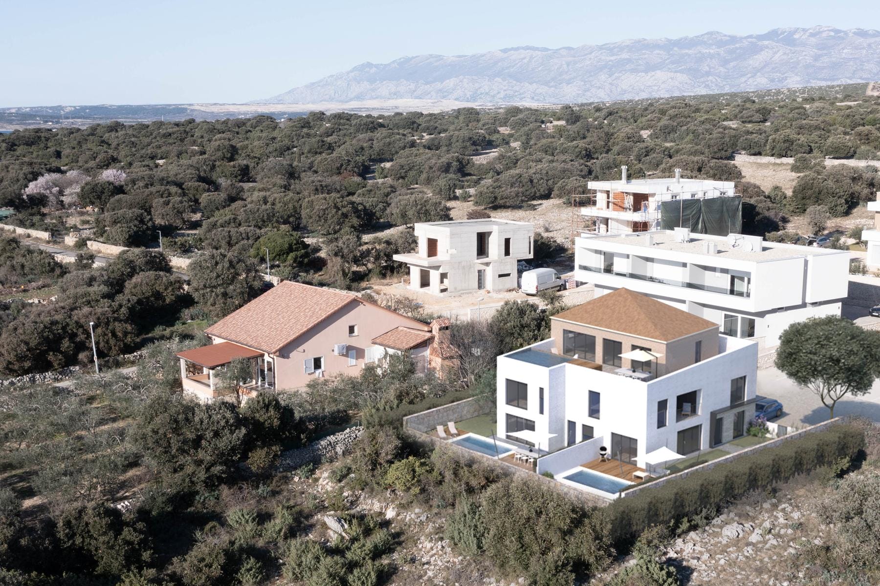 В спокойна зона близо до красивия град Паг се намира изключителен апартамент с площ от 144 м2. Този модерен имот, разположен на първия етаж на уютна сграда, предлага комфортни условия за живот и отдих. От вътрешността се открива спираща дъха гледка към откритото море, която осигурява ежедневна доза спокойствие и хармония. Сградата се състои от четири жилищни единици, а целият комплекс разполага със собствен басейн, идеален за почивка и срещи с семейство или приятели. Обмисленото разпределение на помещенията позволява удобно използване на пространството, съчетавайки функционалност и модерен дизайн.