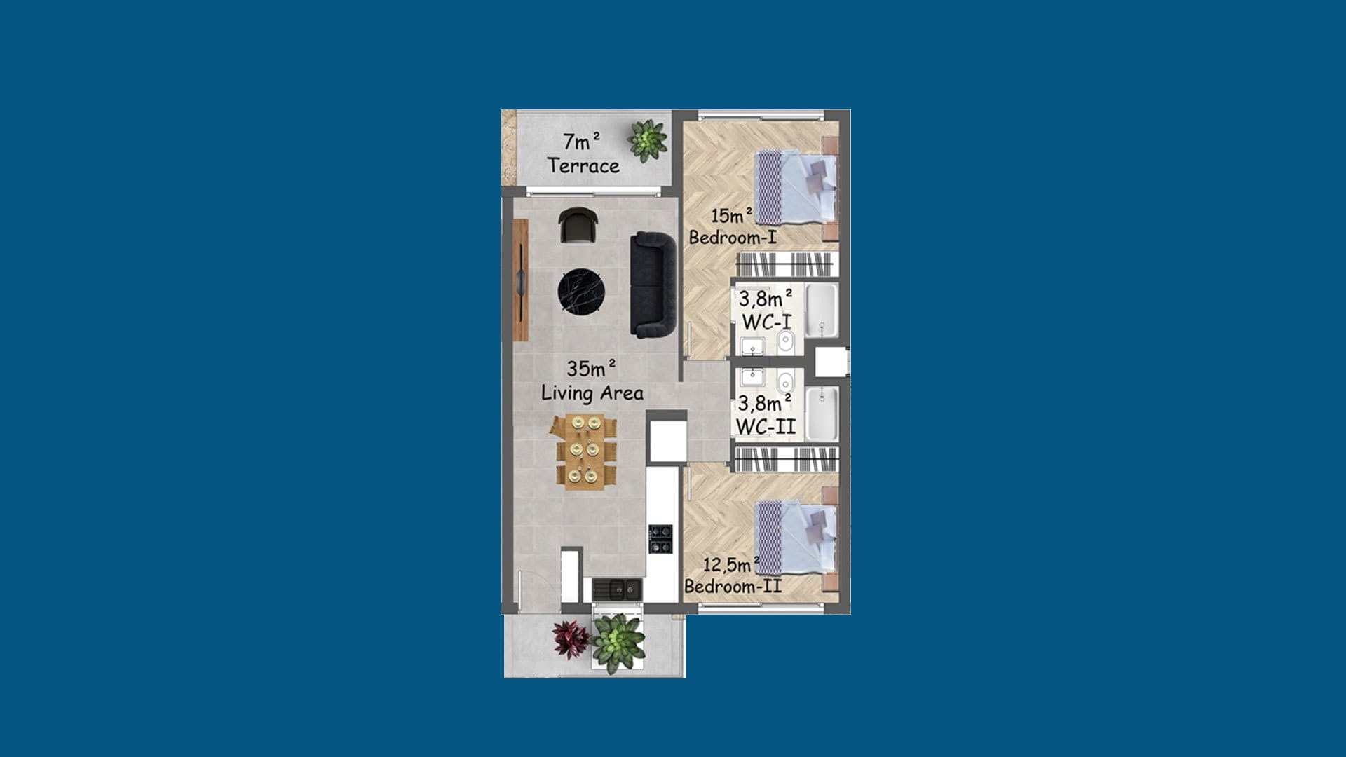 Есентепе, живописен град в Северен Кипър, отваря вратите към идеалното място за живот. Апартамент 2+1 с площ от 117 м2 предлага изключително пространство, съчетаващо удобство и функционалност. Просторната кухня, свързана с дневната, създава хармонична зона за ежедневен живот, идеална за кулинарни експерименти и семейни моменти. Две уютни спални осигуряват комфортна почивка и уединение на всеки от обитателите. Освен това наличието на две бани значително повишава комфорта на живот, позволявайки удобно ежедневие. Просторната тераса е перфектното място за релакс под открито небе или приятелски срещи. Това е уникално пространство, в което всеки момент придобива ново измерение, предлагайки неограничени възможности за аранжиране.