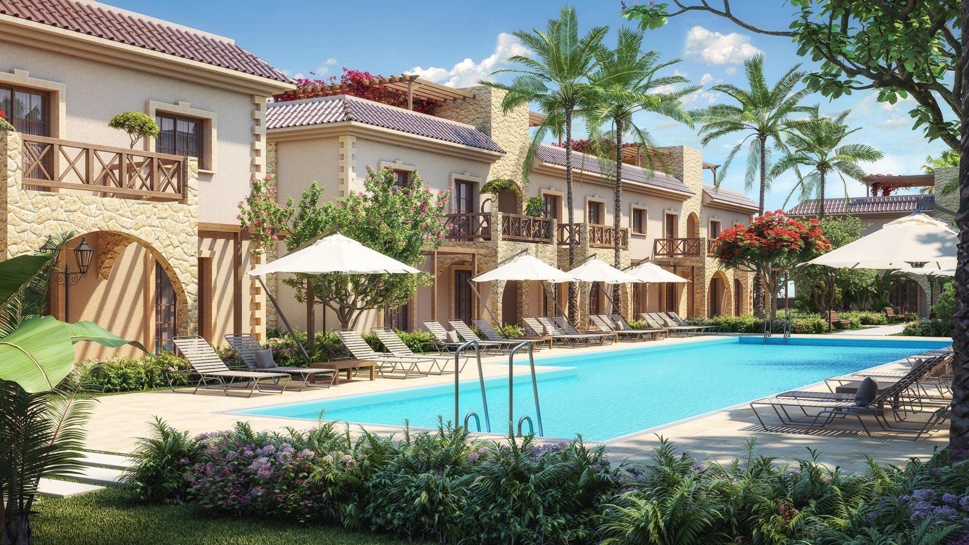 Обграден от зеленина пейзаж и достъп до басейн създават комфортни условия за релакс.