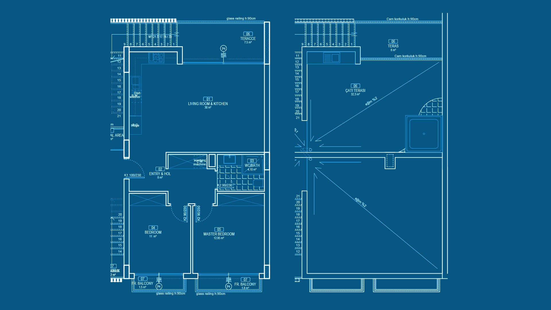 Ексклузивен пентхаус 2+1 в Кирения, Северен Кипър, предлага съчетание на модерност с комфорт на ежедневието. Просторният интериор с площ от 128 м2 създава отлично място за живот и отдих. Елегантната дневна с кухня, отворена към трапезарията и терасата, обогатява пространството с допълнителна зона за прекарване на време с близките. Две спални, всяка със собствен балкон, осигуряват комфорт и вдъхновяват за ново начало всеки ден. Ключов елемент е впечатляващата 37-метрова покривна тераса с прекрасна гледка към околния пейзаж.