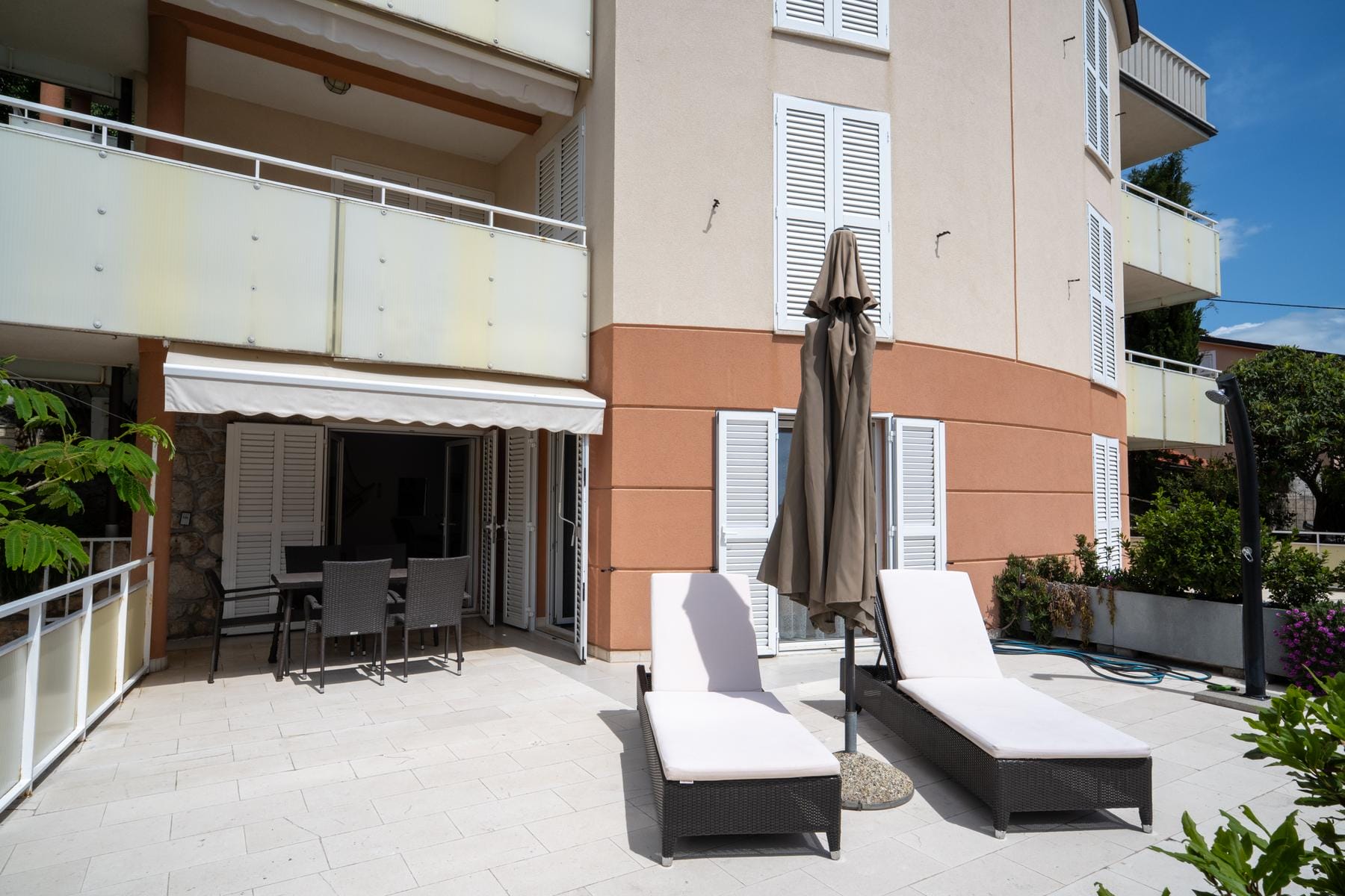 Околността около сградата благоприятства почивката и активния начин на живот. Разходка по крайбрежната алея или мигове на релакс на терасата с изглед към морето създават неповторима атмосфера на това място. Този апартамент представлява идеалната комбинация от модерност и естествен чар на хърватското крайбрежие.