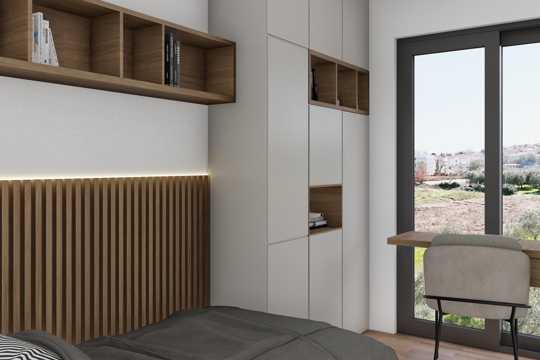 В живописното селище Тар-Вабрига, разположено на крайбрежието на Истрия, се намира изключителен апартамент с площ от 58 квадратни метра. Това е нова инвестиция, реализирана в модерен жилищен комплекс, който осигурява комфорт и функционалност. Апартаментът се намира на първия етаж на жилищна сграда, което гарантира спокойствие и уединение, като същевременно осигурява лесен достъп до центъра на населеното място. Обмисленото разпределение на помещенията и изходите към балкон и лоджия осигуряват много естествена светлина и възможност за отдих на открито.