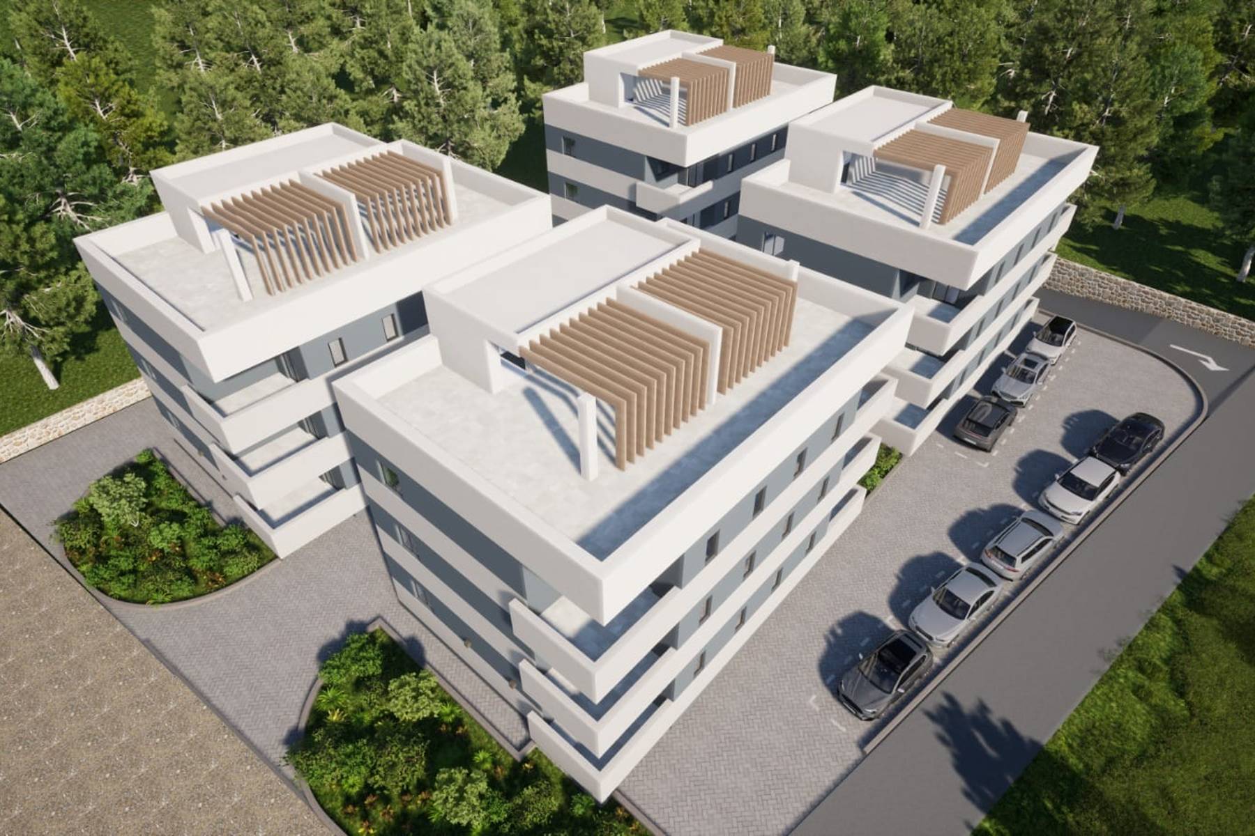 Имотът се намира в модерен жилищен комплекс, състоящ се от четири сгради. Всяка от тях разполага с по шест апартамента, разпределени на три етажа. Апартаментите са ориентирани към западната страна, което осигурява красиви гледки и добро слънчево осветление.