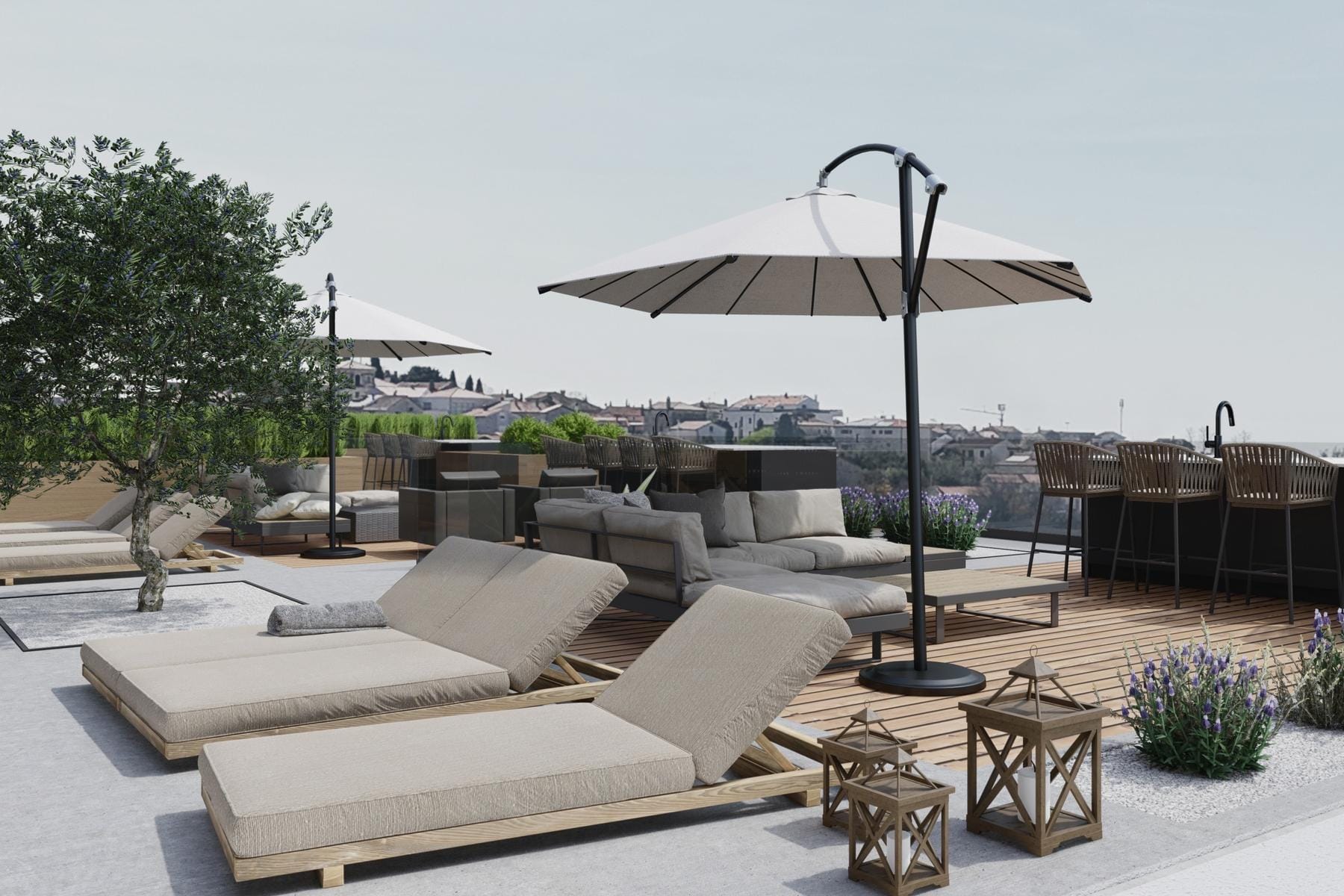 Две спални осигуряват интимност и спокойствие. Едната има изход към балкон. На разположение е също баня с модерно оборудване. Най-голямото предимство е частната тераса на покрива, която създава идеално място за релакс и организиране на срещи на открито.