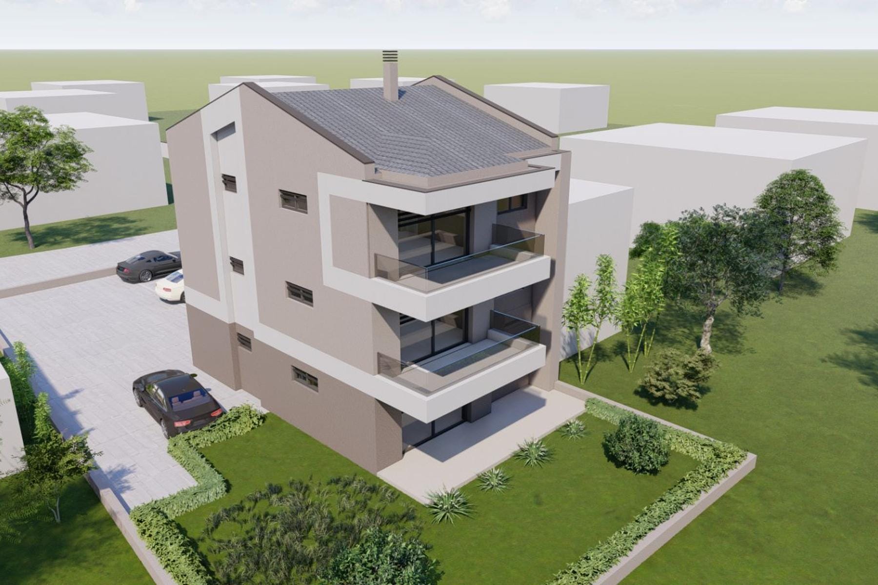 Интимната застройка позволява запазване на личното пространство на живущите и спокойствието в околността. Просторните вътрешни пространства могат лесно да бъдат адаптирани към индивидуалните нужди при обзавеждане.