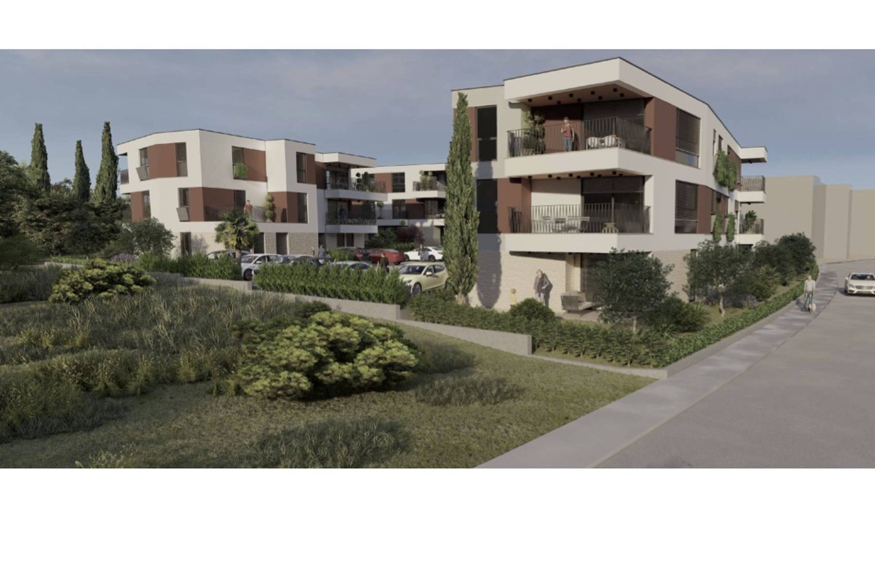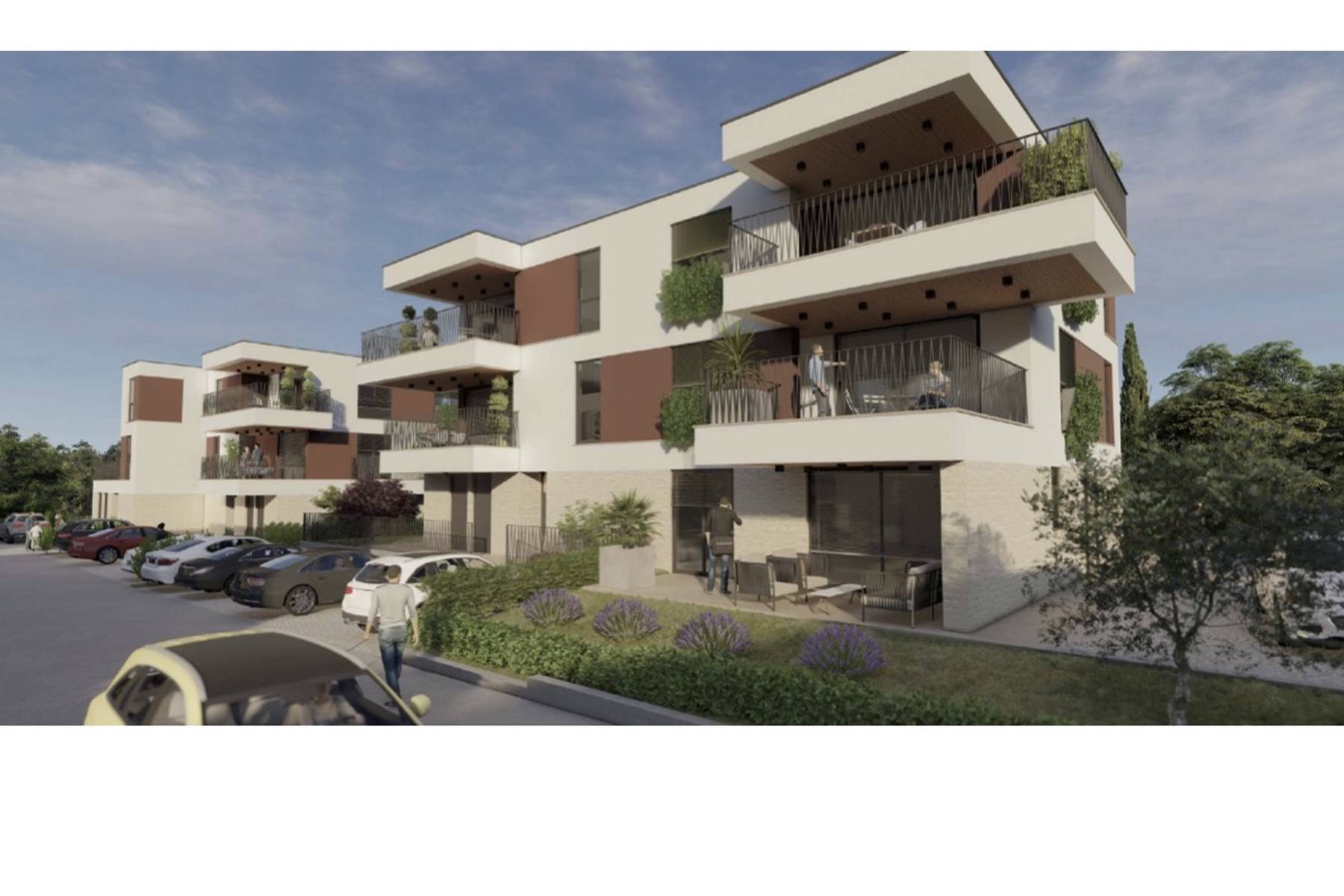 Представеният имот е комфортен апартамент, разположен в модерен комплекс от сгради в Медулин. Сградата, в която се намира жилището, се отличава с камерна атмосфера – само три апартамента на етаж осигуряват спокойна обстановка и уединение. Апартаментът е разположен на партерния етаж, което улеснява достъпа до прилежащата градина и зелените площи около имота.