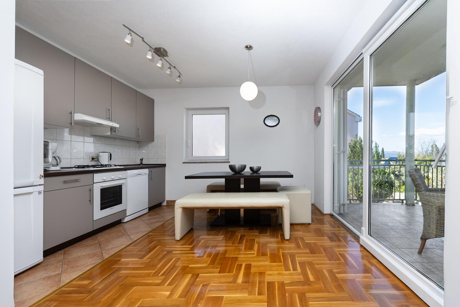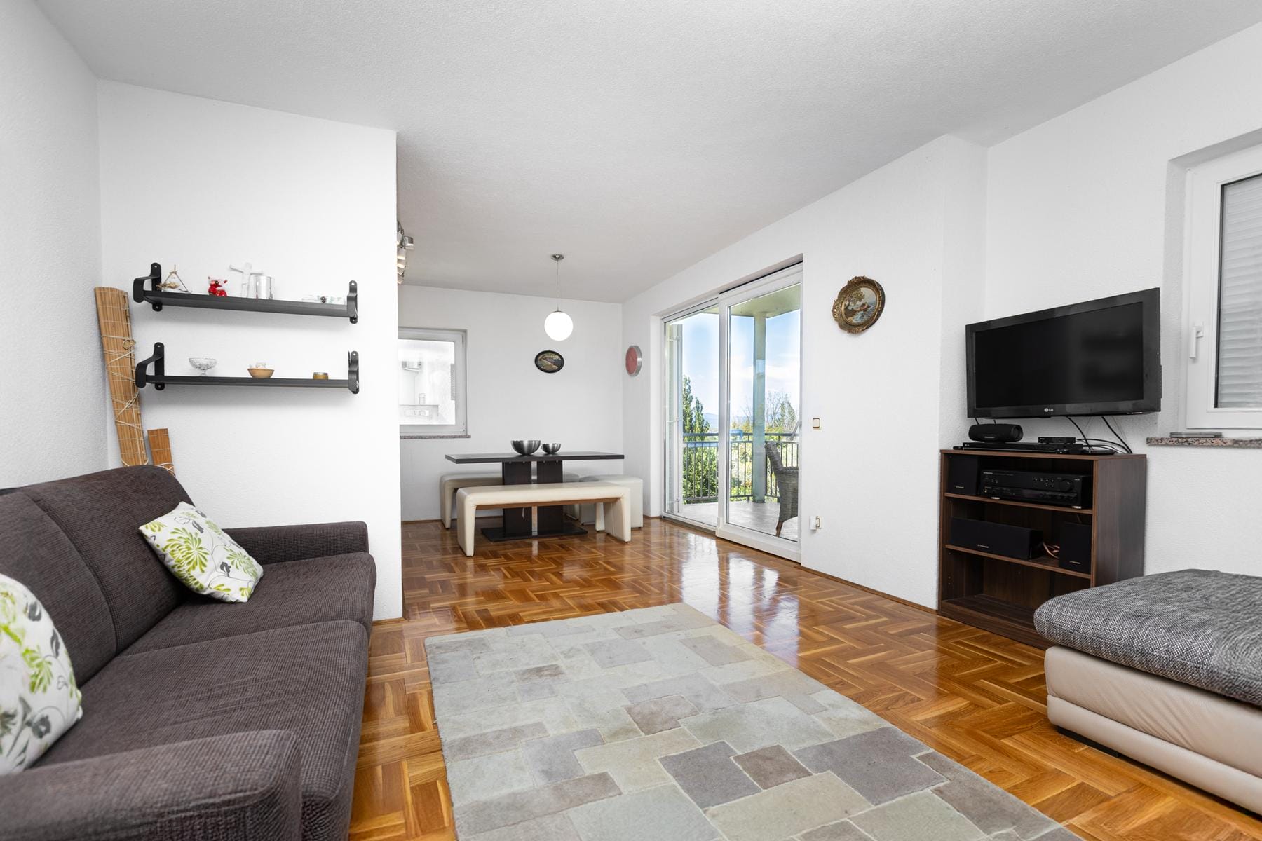 Покритата тераса е допълнително пространство за отдих с живописна гледка към Адриатика. Имотът е готов за нанасяне без необходимост от ремонти или по-големи инвестиции.