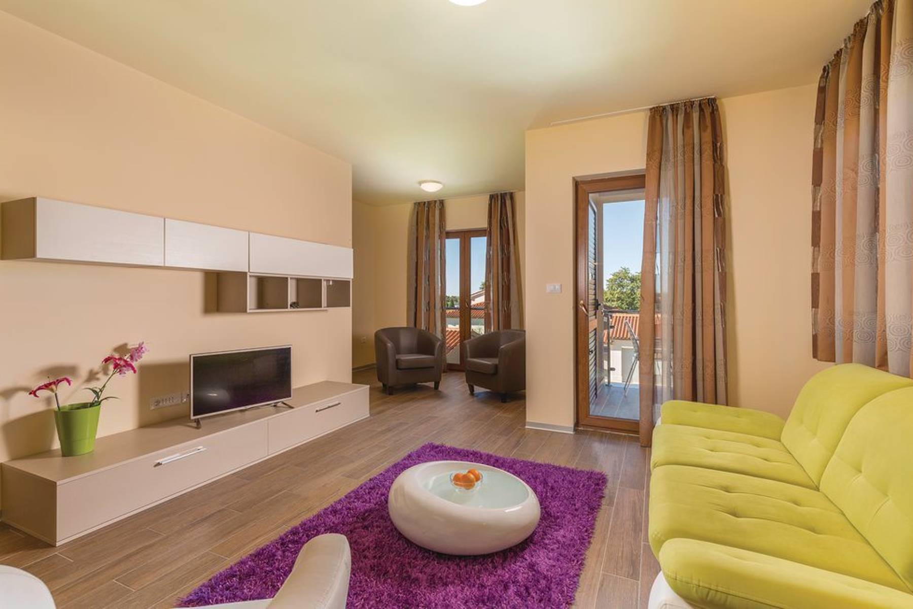 Имотът, разположен на първия етаж на жилищна сграда, е изключително предложение за хора, търсещи комфортен и светъл апартамент в Хърватия. Жилището с площ от 75,8 м² предлага добре организирано пространство, в което всички помещения изпълняват своите функции перфектно. Централната точка е дневната, съчетана с кухня и трапезария, които се отварят към терасата, осигурявайки приятно място за отдих и прекарване на време на открито. Освен това апартаментът разполага с две спални, като една от тях също има излаз към собствена тераса, което увеличава уединението и комфорта при самостоятелен отдих.
