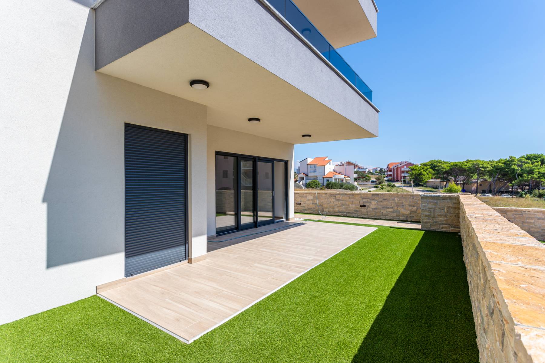 В самото сърце на живописното село Повляна на хърватския остров Паг се намира изключителен имот, съчетаващ комфорт и функционалност. Апартаментът с площ от 84 м² се отличава с добре обмислено разпределение на помещенията, което осигурява усещане за простор и уединение. Жилището е разположено на партерния етаж на модерен блок, откъдето има достъп до частна градина – идеално място за отдих на открито.