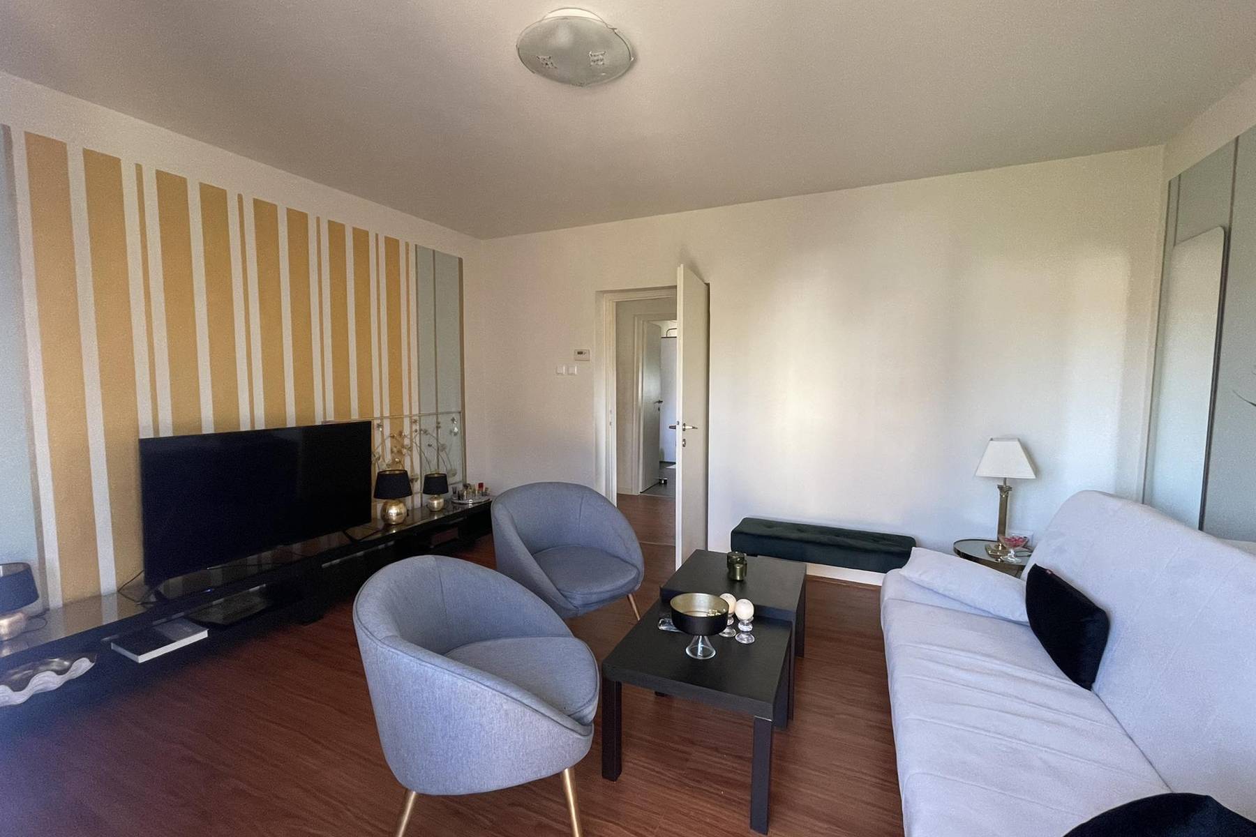 Интериорът на апартамента запазва хармонията между практичните решения и естетиката. Това предложение е идеално място за хора, търсещи жилище с удобна локация и пространство за живот. То също така представлява възможност за инвестиция под наем или летен оазис край Адриатика.