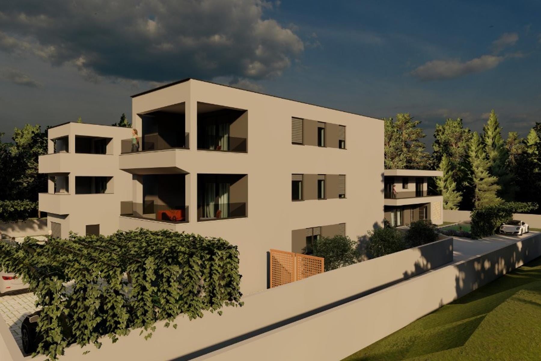 Обектът се намира в спокойната част на Медулин, което позволява на жителите да се наслаждават на тишина и релакс, като същевременно имат лесен достъп до всички градски удобства. Сградата е обградена от поддържана територия, а паркингът наблизо осигурява удобство за собствениците на автомобили. Така планираният имот представлява отлично предложение за хората, които ценят комфорта и начина на живот край морето.