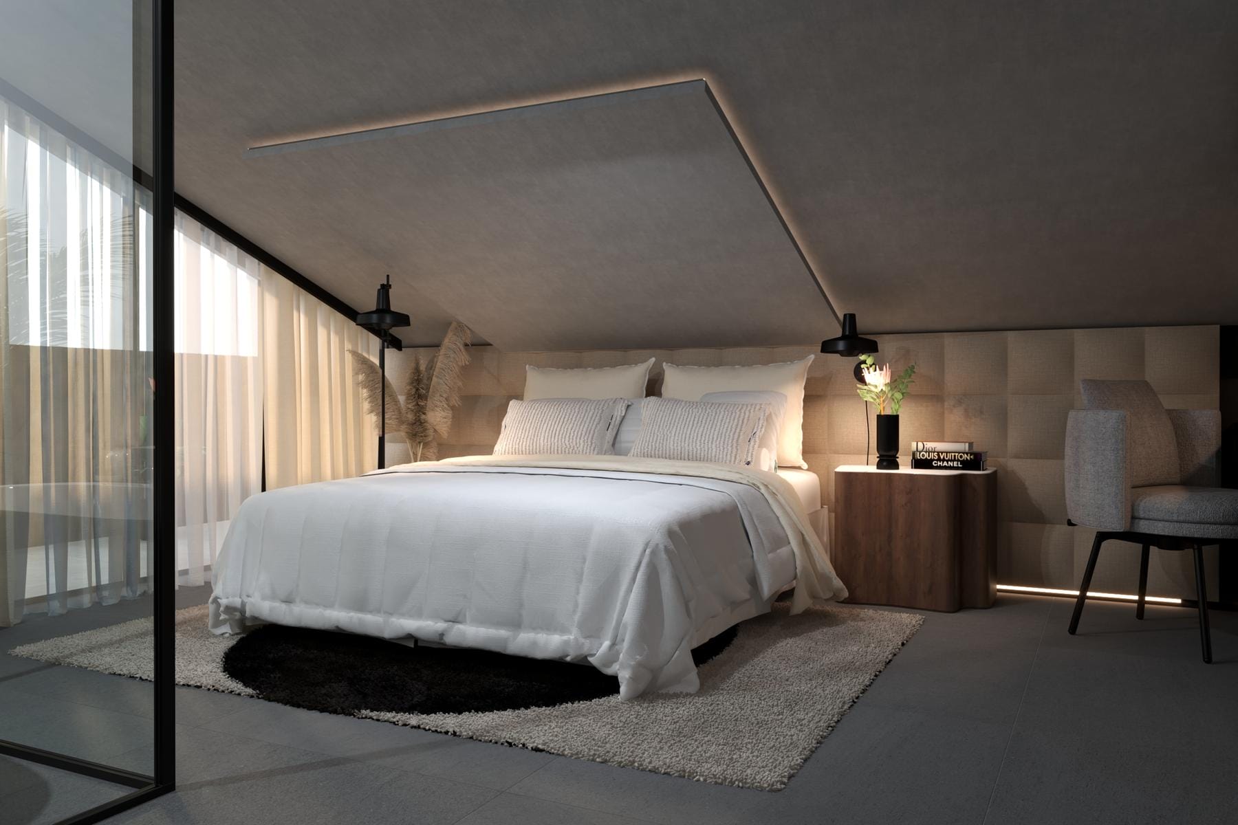 В спалнята има място за голямо легло и гардероб, което позволява ефективно използване на пространството. Банята е оборудвана с необходимите санитарни уреди и е проектирана с внимание към функционалността. Лоджията представлява допълнително място на открито, идеално за почивка в топлите дни. Паркомястото в гаража гарантира защита на автомобила и удобство при ежедневна употреба.