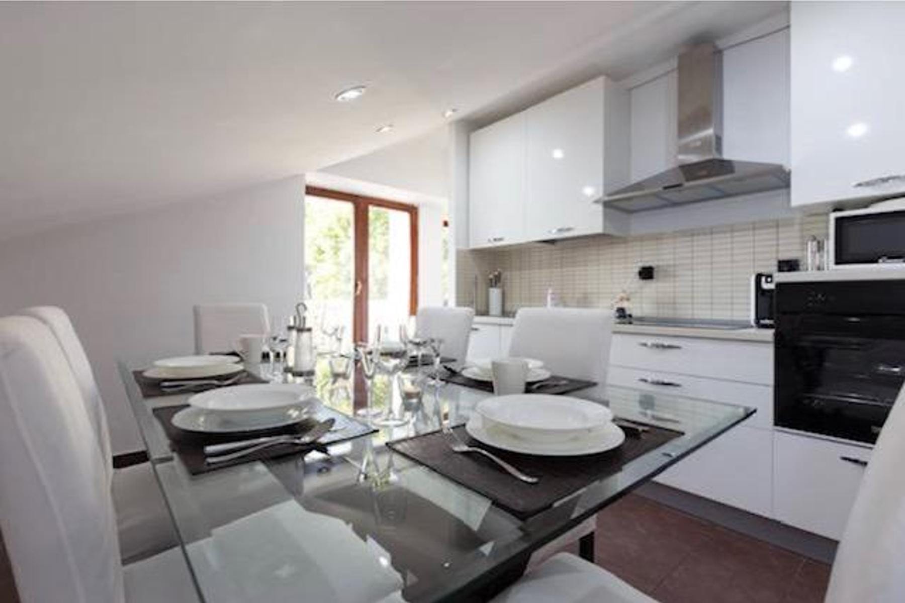 Предлаганият имот се намира в спокойната част на остров Крък, в град Омишалй. Апартаментът се отличава с просторност и функционално разпределение на помещенията, идеално за комфортен живот или ваканционно пребиваване. Жилището включва три стаи и голяма дневна с отворена кухня и трапезария, което създава светло и приветливо общо пространство. Светлите интериори осигуряват естествена светлина през по-голямата част от деня, подчертавайки топлия климат и южния характер.