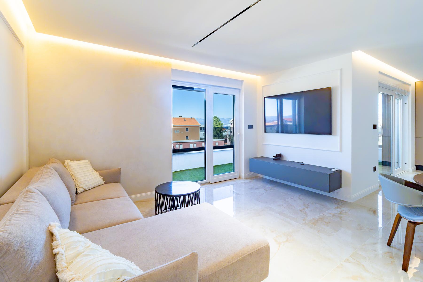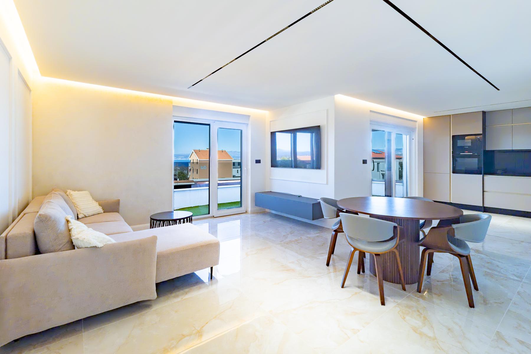 Малинска-Дубашница е място, което привлича вниманието на хора, търсещи комфорт и спокойствие край Адриатика. В това очарователно населено място се намира изключителен апартамент с площ от 96 м², идеален за семейства или за хора, които ценят пространството и съвременния начин на живот. Жилището е разположено на първия етаж на нова сграда, която съчетава лукс и функционалност. Светлите интериори и голямата покрита тераса са отлично място за релакс след ден, изпълнен с атракции.