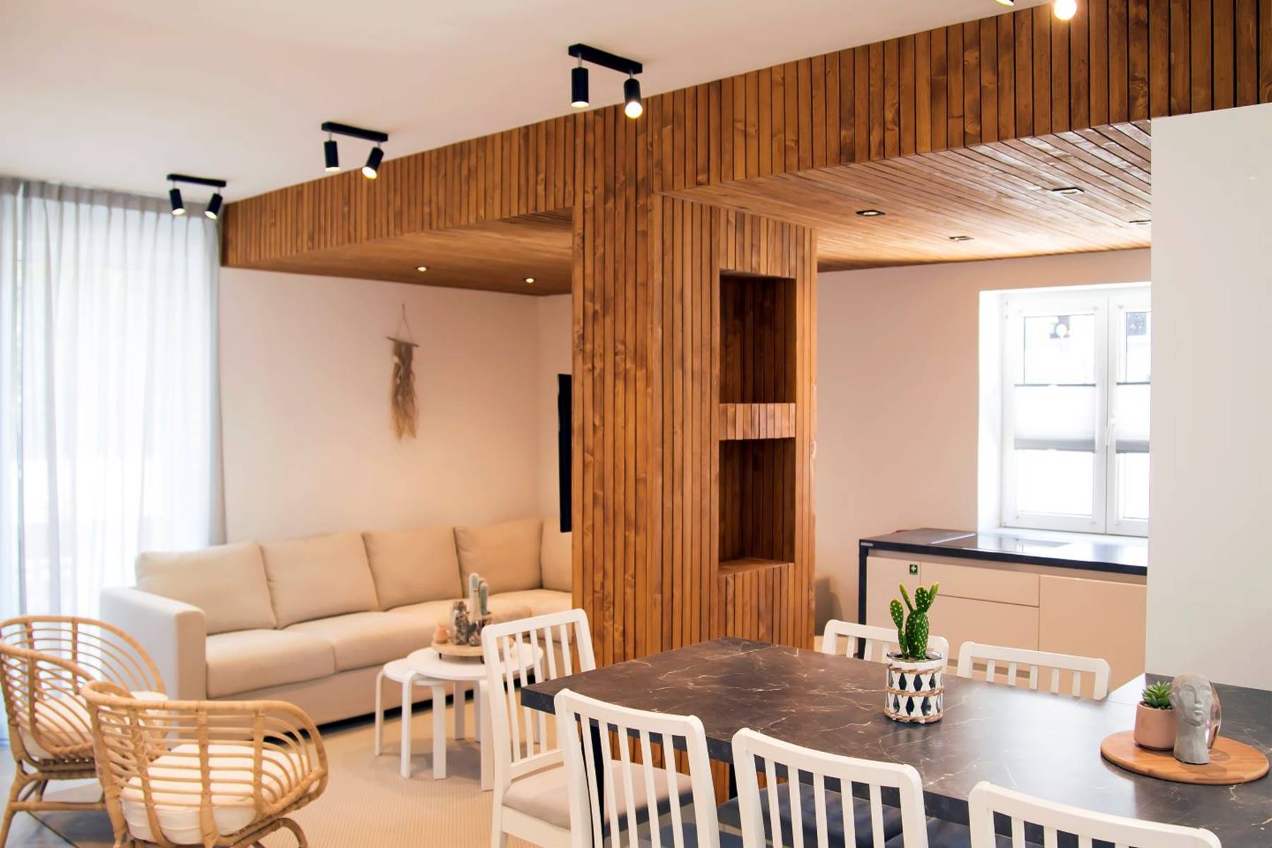 Разпределението на помещенията е подходящо както за интензивно ползване през ваканционния сезон, така и целогодишно. Просторната кухня, обединена с трапезарията и дневната, е центърът на домашния живот. Осветлението и изборът на материали създават топла и приятелска атмосфера. Двете бани осигуряват удобство при по-голям брой обитатели или гости. Близостта до различни ежедневни удобства, магазини и услуги улеснява организацията на деня.