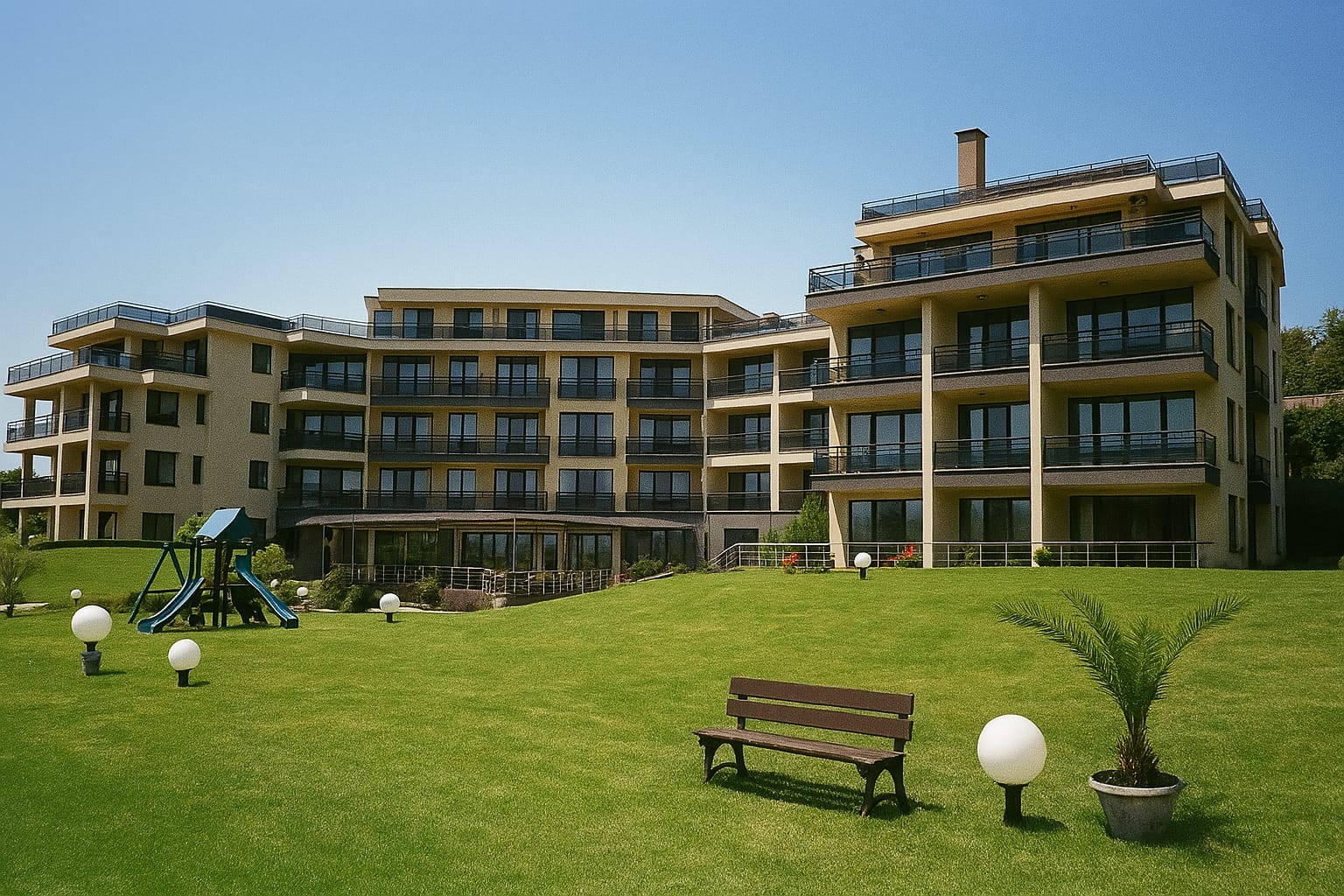 Близостта до плажа, отличната локация и комплексната инфраструктура правят този имот един от най-привлекателните избори по българското Черноморие.