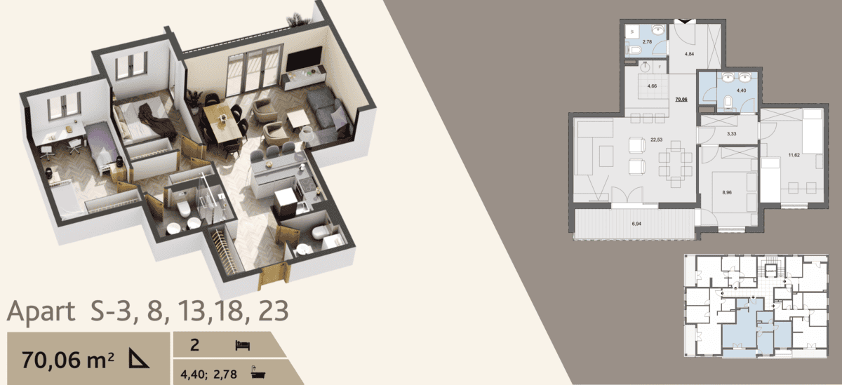 Модерни апартаменти в живописния Тиват са отлична оферта за хора, търсещи комфортно място за живот с впечатляваща гледка към морето. Намиращи се на третия етаж на сградата, инвестицията включва редица съвременни обекти, от които част вече са в процес на изпълнение. Всяка от сградите достига до пет етажа, предлагайки апартаменти с различни размери от 38 м2 до 80 м2, осигурявайки гледки към морето и планините.