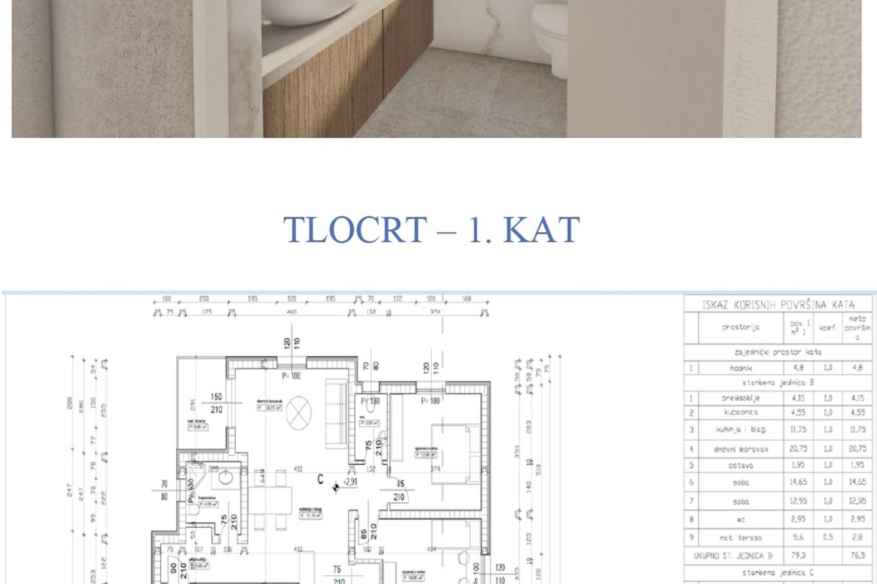 Жилищната площ от 76 м² е внимателно проектирана. Тук се намира светла дневна, свързана с кухня и трапезария в открито пространство. Помещенията са разпределени така, че максимално да се използва наличното пространство и да се осигури удобство при ежедневна употреба. В апартамента има също антре, практична килерна стая и комфортна баня. Цялото създава модерна и приятелска атмосфера, идеална за релакс и срещи с семейство или приятели.