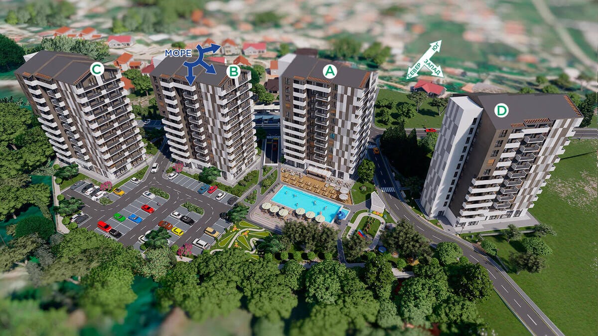 Инфраструктурата както вътрешна, така и външна обогатява офертата и я прави изключителна. Най-високият стандарт осигурява удобство и удоволствие от живота.