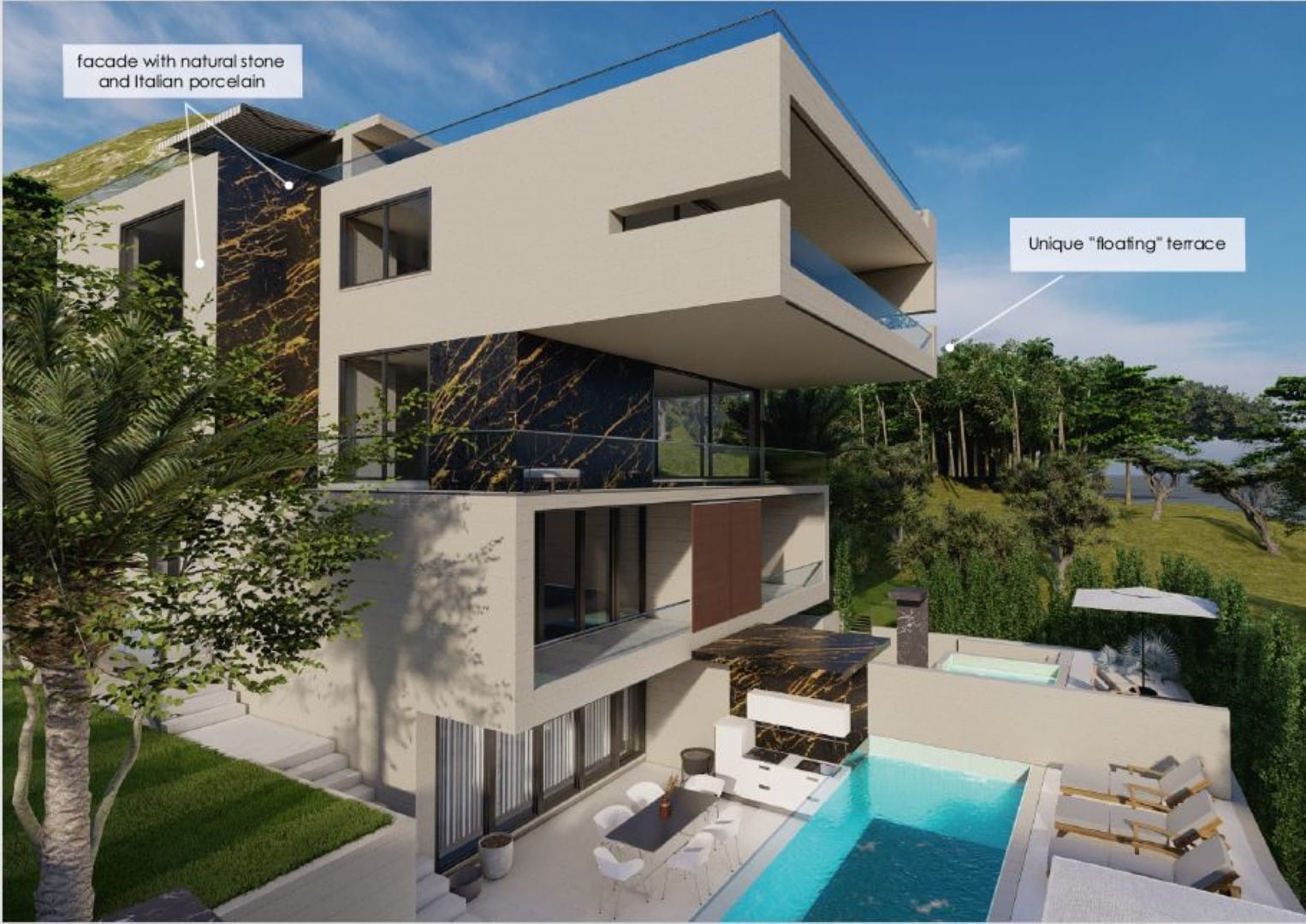 В сградата са използвани здрави строителни материали като бетон и 15 см топлоизолация от стиропор. Фасадата е облицована с естествен камък, а алуминиевите прозорци с тройни стъкла придават елегантен вид. В дневната и всяка спалня е инсталирана климатична система за удобство в горещите дни. Елeктрическото подово отопление гарантира топлинен комфорт. Освен това входните врати са противоблудителни и огнеупорни. Очакваният енергиен сертификат е клас А, което осигурява висока енергийна ефективност на имота.