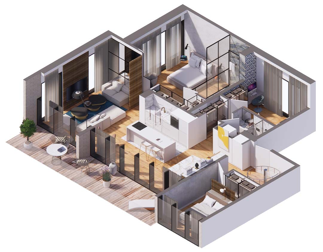 Изключителният пентхаус в Будва е пространство с площ от 263 м², което пленява както с интериора си, така и с околността. Оборудван с: