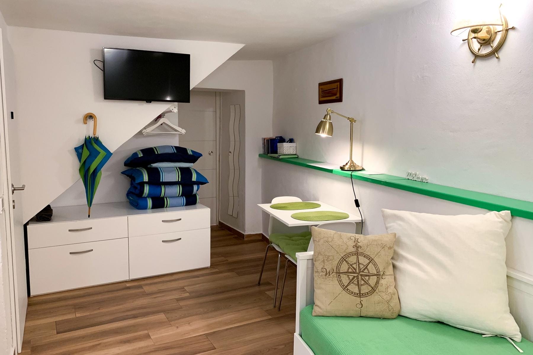 Първият апартамент, разположен на приземния етаж, е компактен и функционален. Той е идеален за двойка или малко семейство благодарение на разпределението, пригодено за 2+1 души. Вторият апартамент заема два етажа, предлагайки простор и комфорт и за по-голяма група гости. Голямата, слънчева тераса създава условия за релакс и срещи на открито.