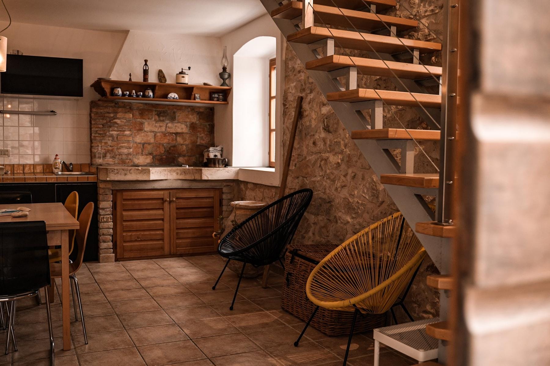 Интериорът включва множество функционални решения, съобразени със семейния начин на живот и отдих. Каменните елементи придават естествена атмосфера, а многоетажната конструкция осигурява интимност и свобода при аранжирането на помещенията. Такова разположение и конструкция правят къщата идеално място за живеене или инвестиция с възможност за отдаване под наем.