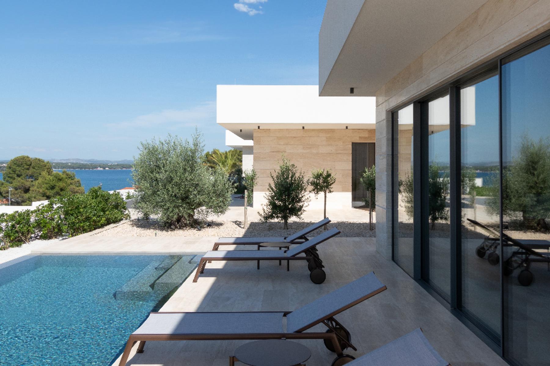 На живописния остров Пашман, в местността Ткон, е наличен изключителен имот, съчетаващ лукс и комфорт. Тази модерна вила с нетна площ от 130 м² създава отлични условия за отдих и ползване на средиземноморския начин на живот. Разположението на сградата осигурява ненарушена морска гледка, която може да се наслаждавате от просторната зона за отдих. Високият стандарт на изпълнение и функционалното разпределение на помещенията отговарят на очакванията на взискателни клиенти.