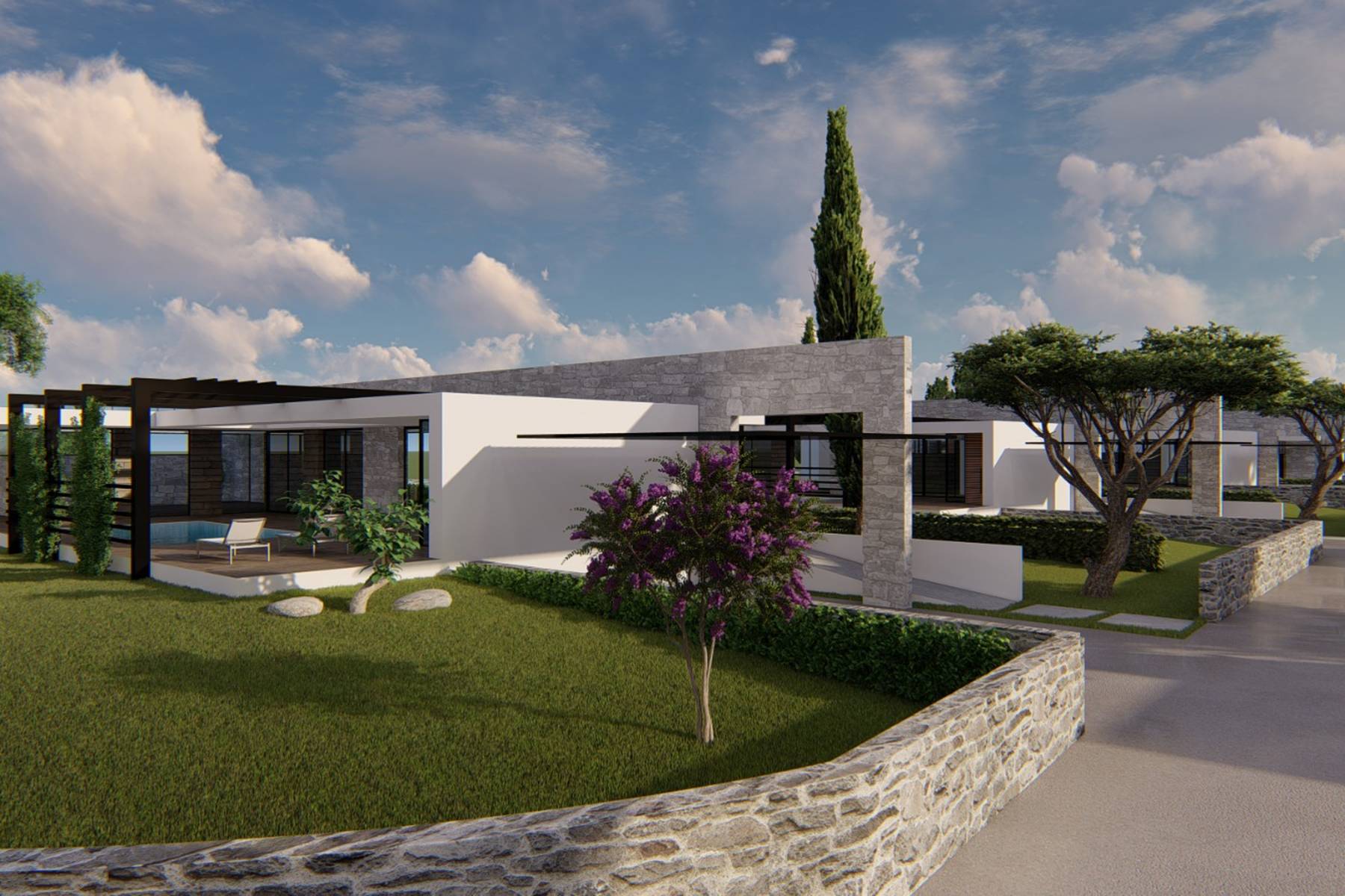 Представената вила е модерен еднофамилен дом, който съчетава удобство с естествена обстановка. Имотът се намира на голям парцел, което е рядкост на пазара в тази част на Далмация. Проектиран е така, че жителите да могат да използват пространството както вътре, така и извън сградата. Домът няма сутерен и е разположен на един етаж, което повишава комфорта при ползване.