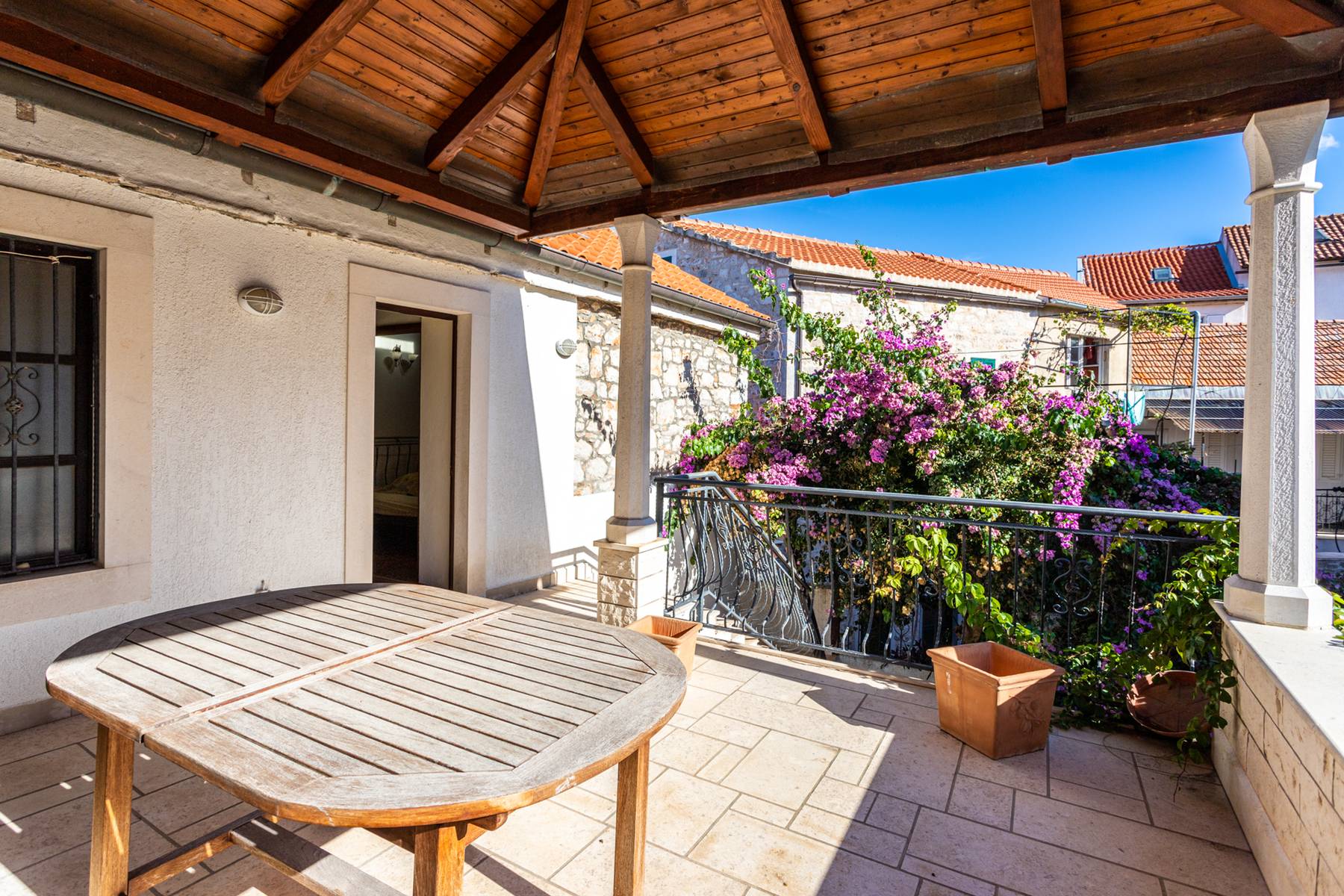 Този каменен имот се отличава със здрава конструкция и добре обмислено разпределение на помещенията. Строежът представя типичната за остров Хвар архитектура, съчетаваща естествени материали с функционалност. Всеки етаж представлява отделен етап от ежедневието, а просторните тераси приканват към прекарване на време навън.