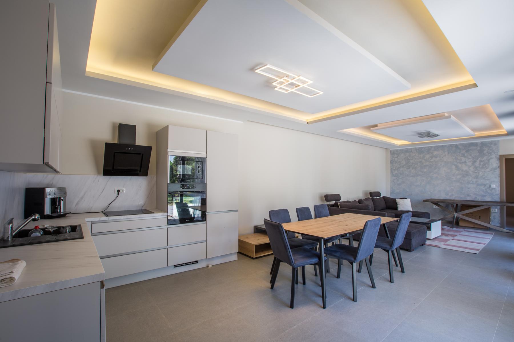 Собствениците могат да се възползват от просторна дневна, съчетана с трапезария и кухня в открит стил. Това е идеално решение за семейства и за хора, които обичат да организират социални срещи. Всички помещения са завършени с висок стандарт, осигурявайки не само стил, но и издръжливост и комфорт всеки ден.