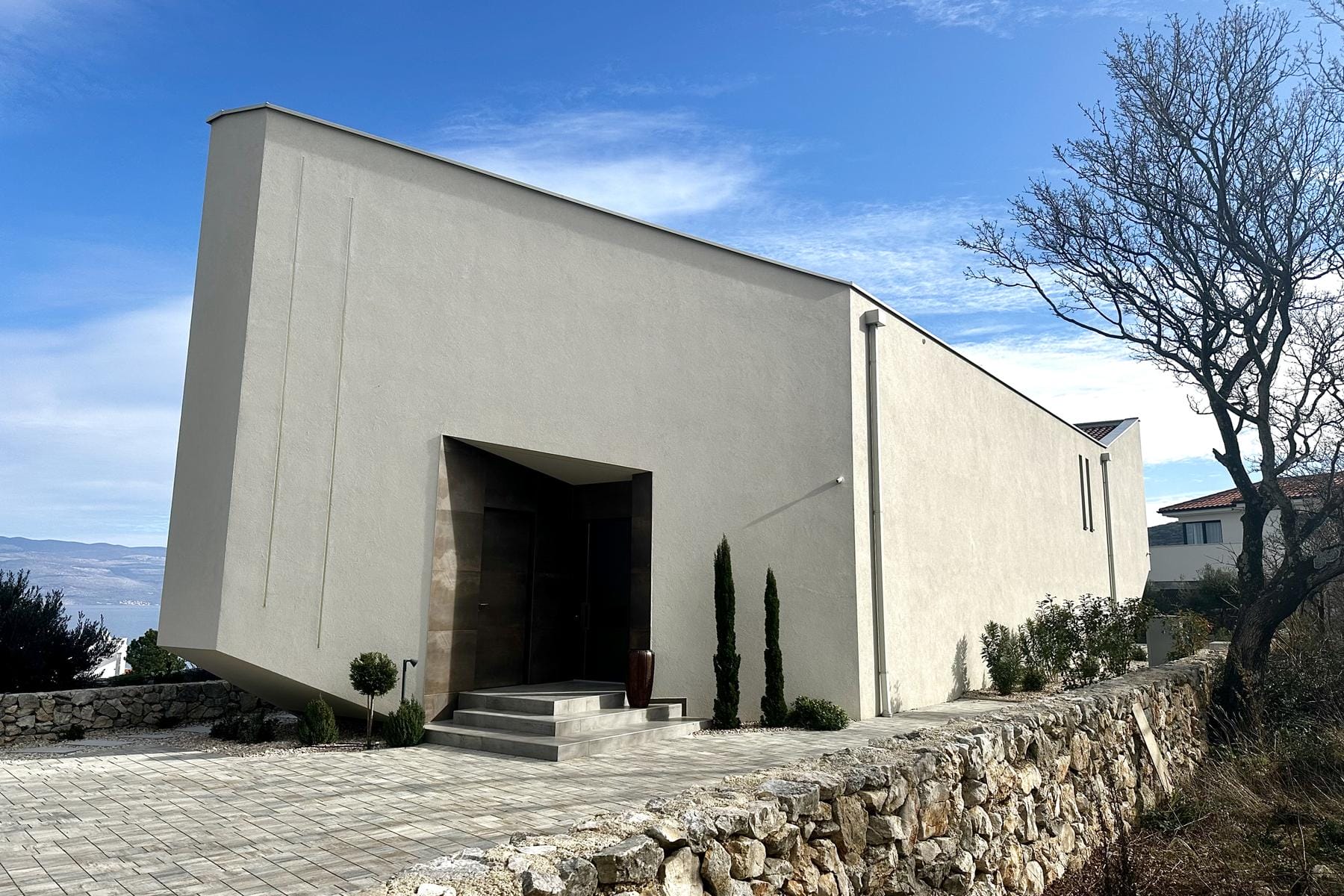 Предлаганата недвижимост е изключителна вила, разположена на живописния остров Крк, в очарователния град Врбник. Сградата с полезна площ от 240 м² е проектирана с мисъл за удобство и релакс на най-високо ниво. Големите прозорци и разпределението на помещенията осигуряват разнообразни пространства за отдих и срещи с най-близките.