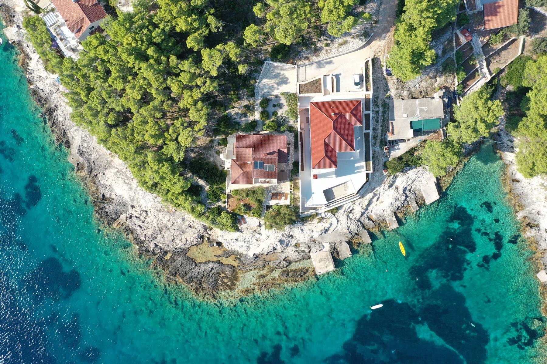 Модерната вила в южната част на Корчула е създадена с мисъл за изискани клиенти. Сградата е разположена върху парцел с площ 800 м² с директен достъп до морето. Създателите на проекта са се погрижили за удобството и елегантността в ежедневието, като са въвели практични решения и висококачествени материали. Просторните помещения, множеството удобства и внимателно проектираното разпределение на етажите правят дома отличаващ се сред останалите предложения.