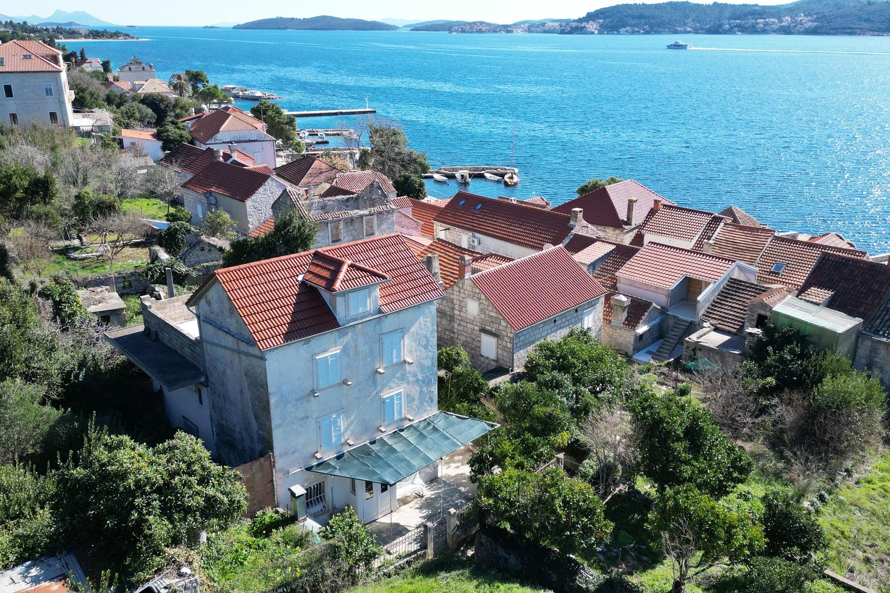 Офертата включва изключителен имот, разположен в живописно селище на Адриатическо море. Имотът се намира само на 60 метра от морския бряг, което осигурява лесен достъп и неповторими гледки. Сградата представлява съчетание на традиционна каменна архитектура с модерна конструкция от стоманобетон. Тази комбинация гарантира здравина и естетика. Къщата предлага просторни помещения с обща полезна площ от 250 квадратни метра, разпределени на няколко нива. Тя е идеална за семейства, които ценят комфорта и близостта до природата.