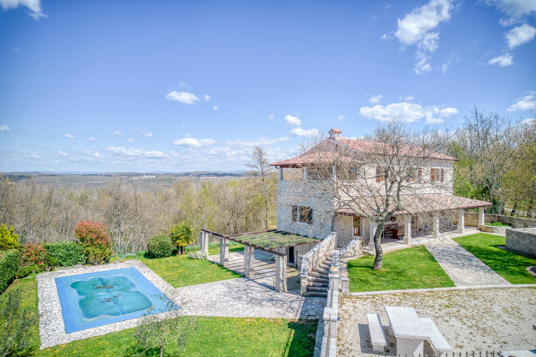 Този изключителен имот, разположен в живописното градче Тинян в Хърватия, е идеално предложение за хора, които ценят пространството, комфорта и връзката с природата. Къщата с площ от 250 м² се простира на два етажа, предлагайки удобни интериори, проектирани с мисъл за семейството и гостите. Четири спални със собствени бани гарантират уединение и удобство за всеки обитател.