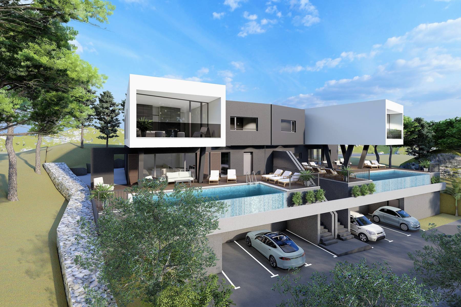 Разпределението на помещенията включва модерни решения, както и зони за отдих и релакс. Допълнително предимство е частният басейн, от който се открива впечатляваща гледка към околността. Различните нива на къщата отговарят на нуждите дори на най-взискателните потребители, съчетавайки функционалност с естетика. Това е отлична оферта както за целогодишно живеене, така и за ваканционен дом.