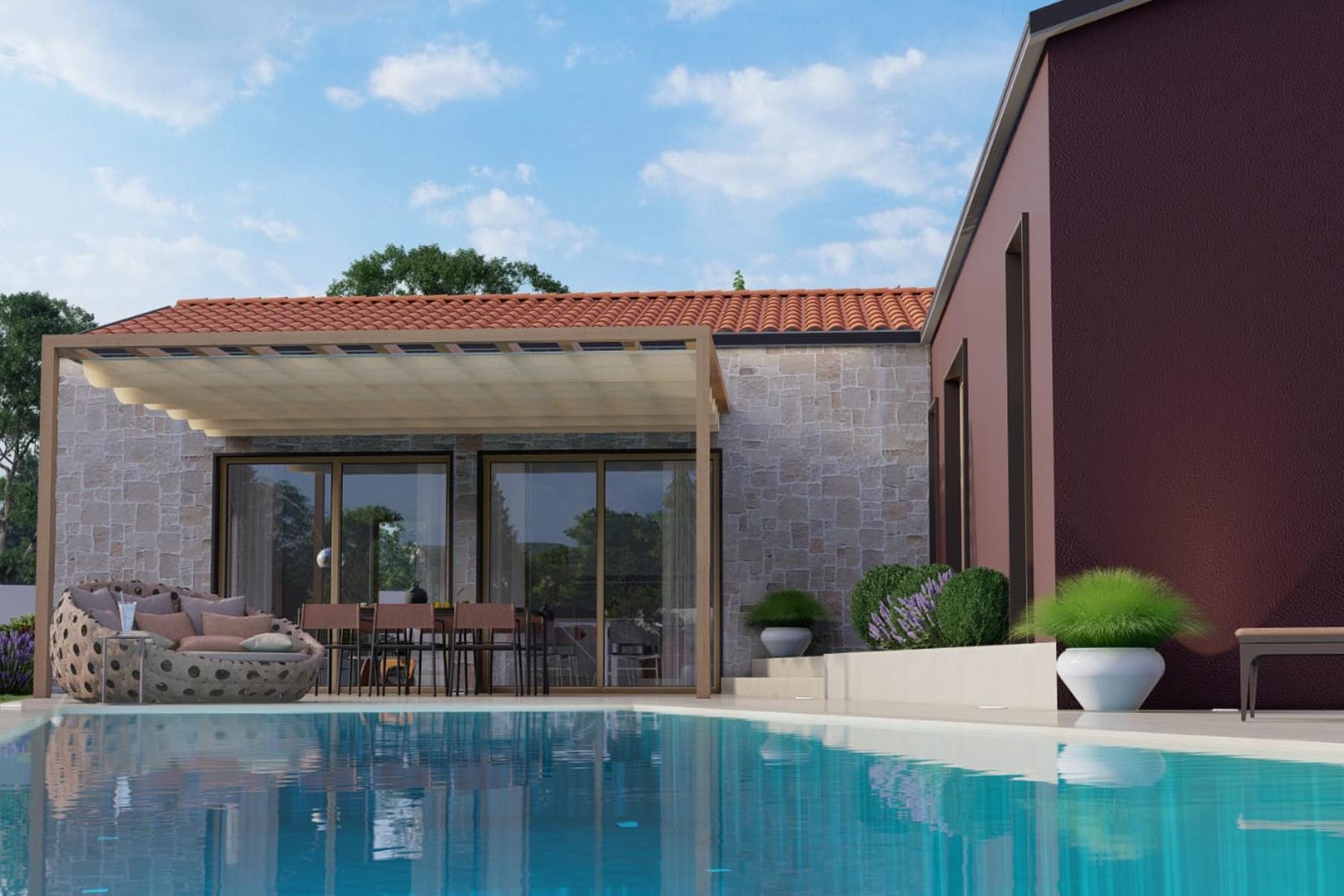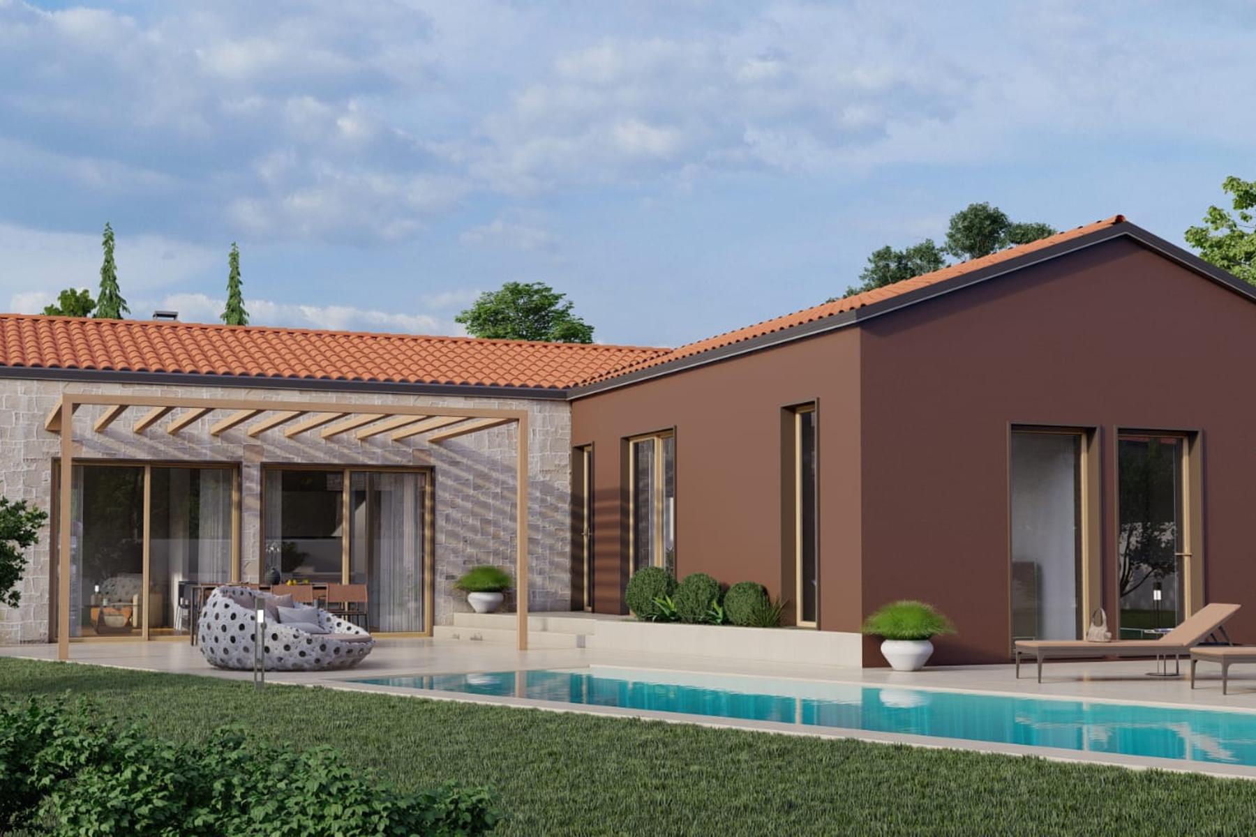 Поддържаната околност благоприятства релаксацията и активния отдих на открито. Отопляемият басейн позволява практикуване на водни спортове дори извън летния сезон. Терасите са естествено продължение на дневната зона в къщата и насърчават прекарването на време навън.