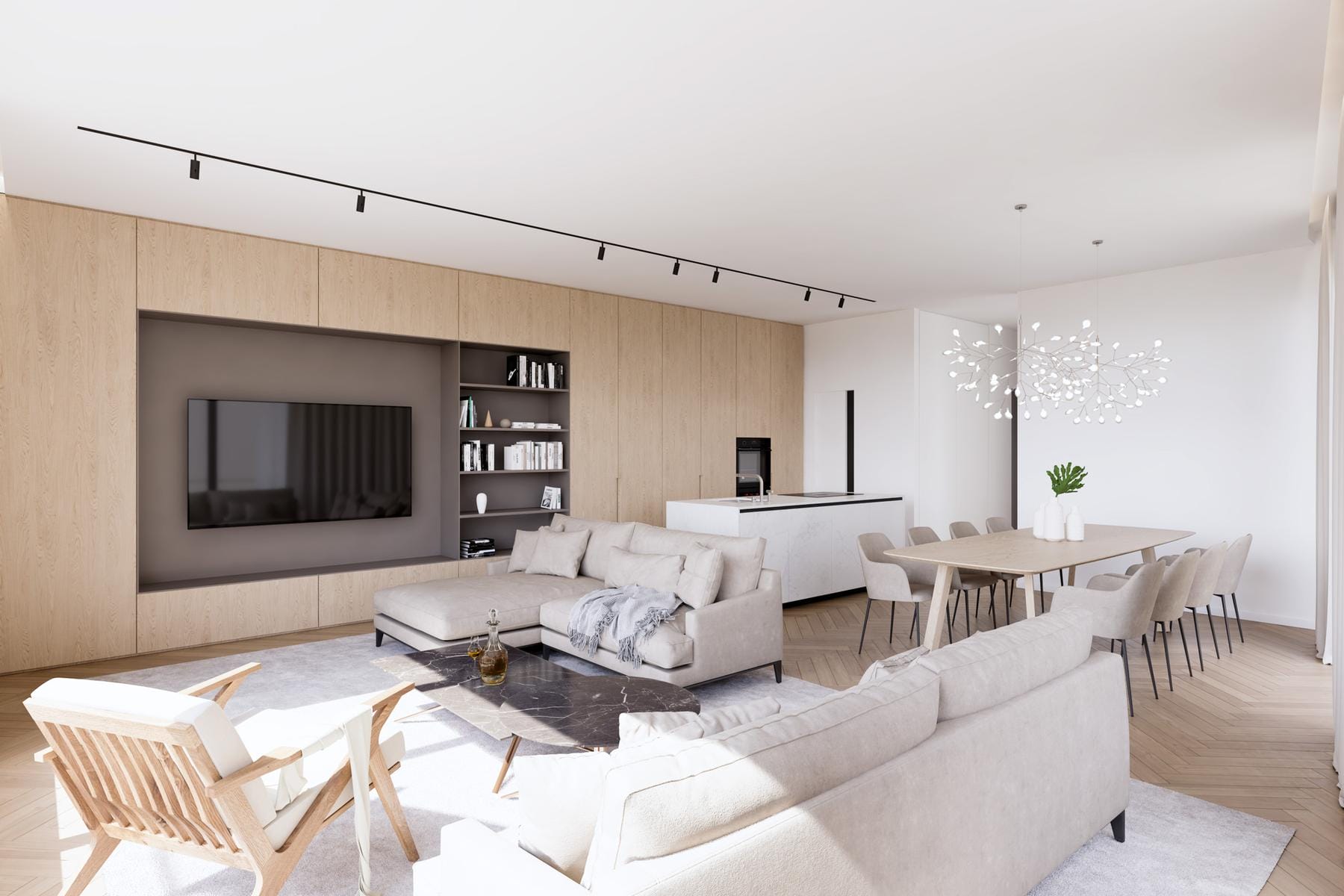 Интериорите предлагат множество възможности за аранжиране както в дневната зона, така и в личните пространства. Кулминацията е достъпът до басейна, който прави топлите дни по-приятни и позволява релакс непосредствено до дома. Това място отговаря дори на най-високите изисквания на клиентите.