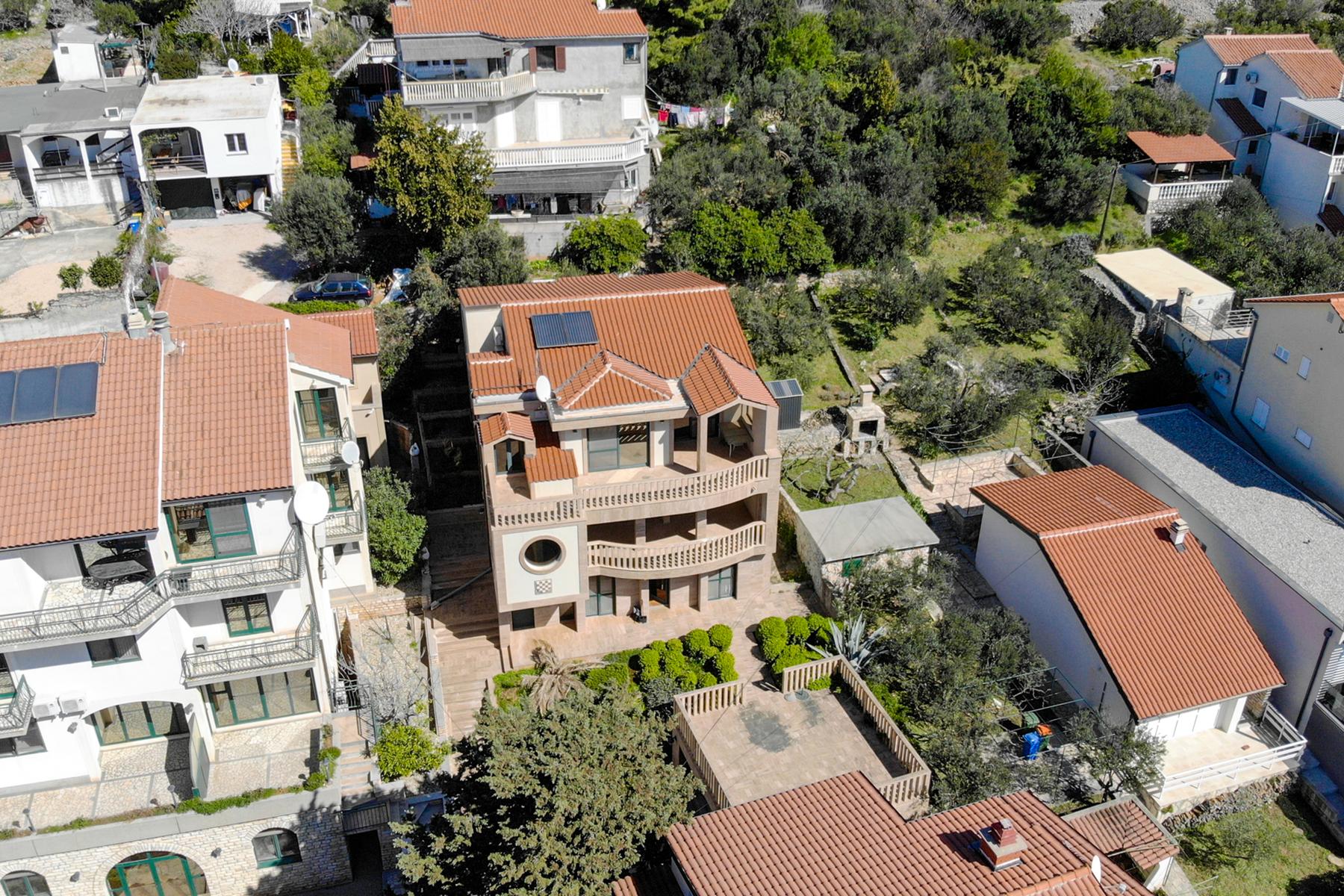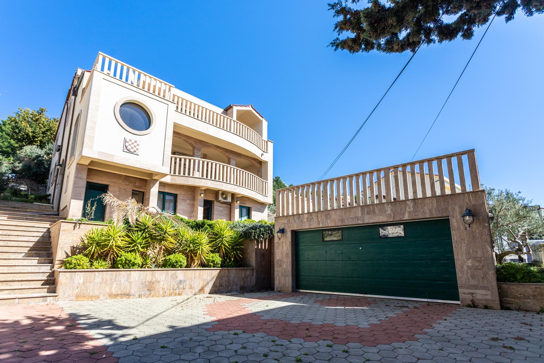 На партерния етаж се намира голяма дневна, свързана с кухня и трапезария, две спални с частни бани и тераса с излаз към градината. Първият и вторият етаж предлагат подобно разпределение: просторни дневни стаи с излаз към балкони с панорамен изглед към Адриатика, две спални всяка със собствена баня и гардеробна, както и допълнителна тоалетна. Това разделение позволява свободно ползване от няколко семейства или краткосрочно отдаване под наем.