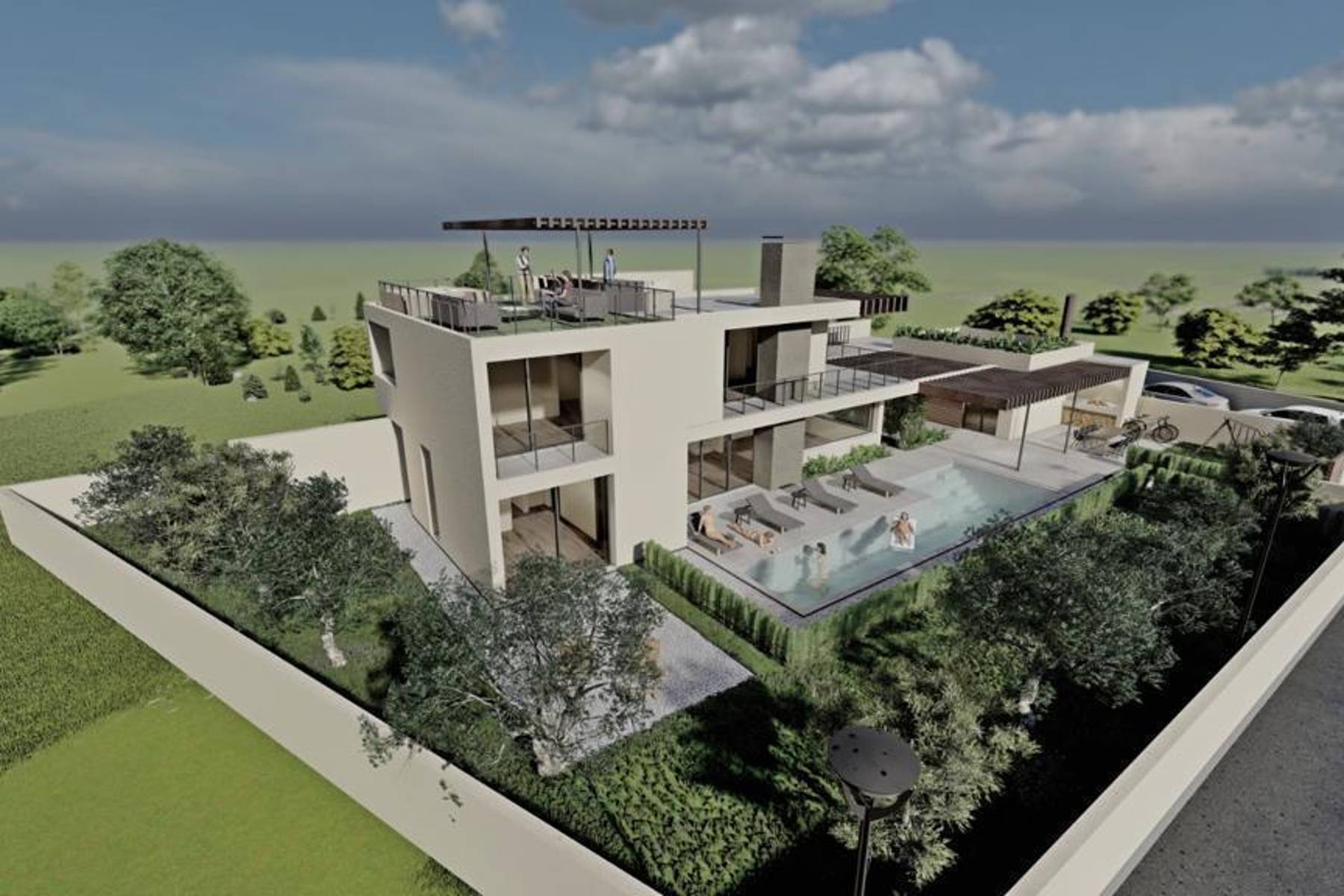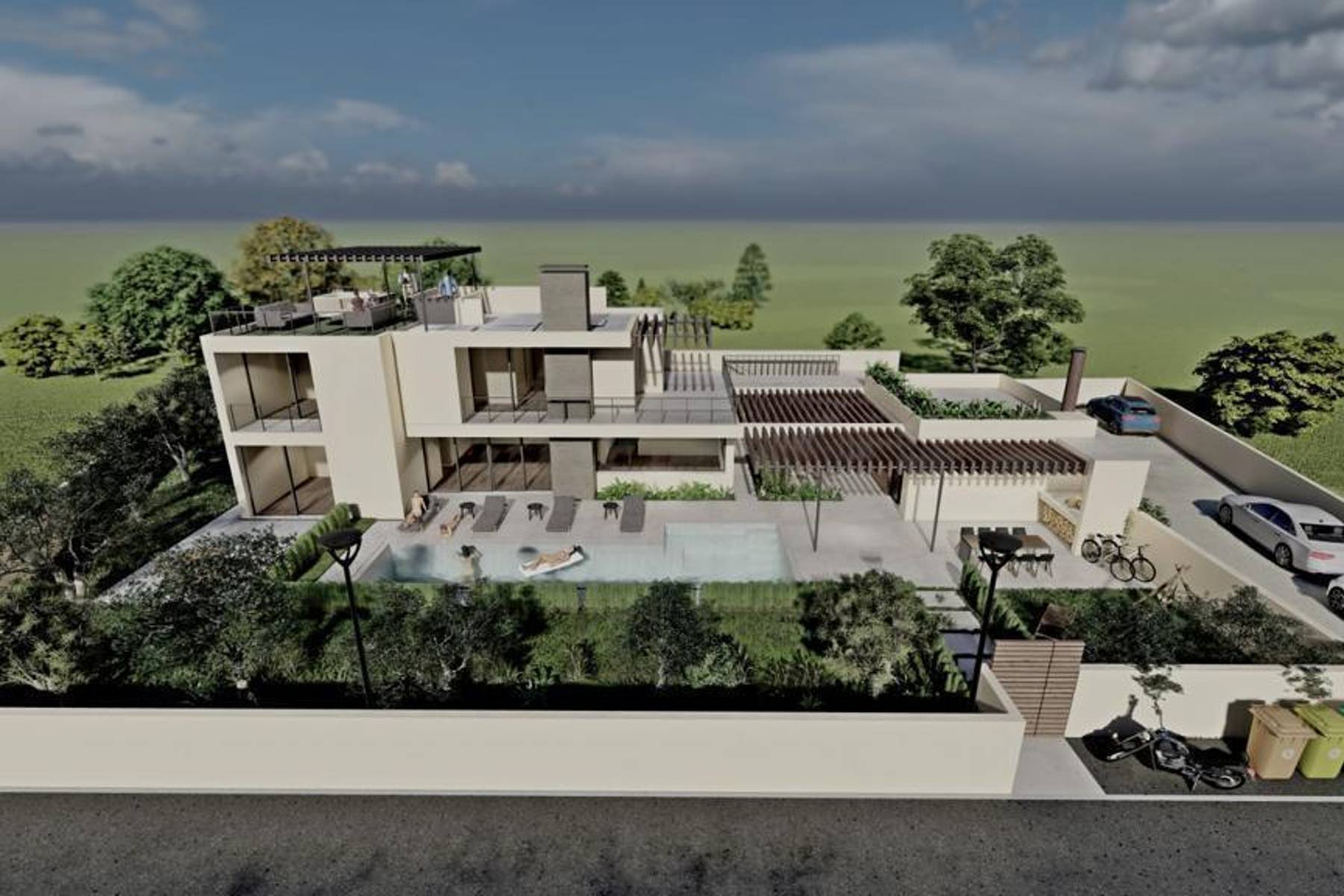 Вилата се намира в затворен комплекс от урбанистични вили, които се продават независимо една от друга. Територията е добре облагородена и подготвена за удобен живот на открито. Локацията осигурява удобни транспортни връзки, включително бърз достъп до центъра на най-близкия град, който пулсира с културен и социален живот.