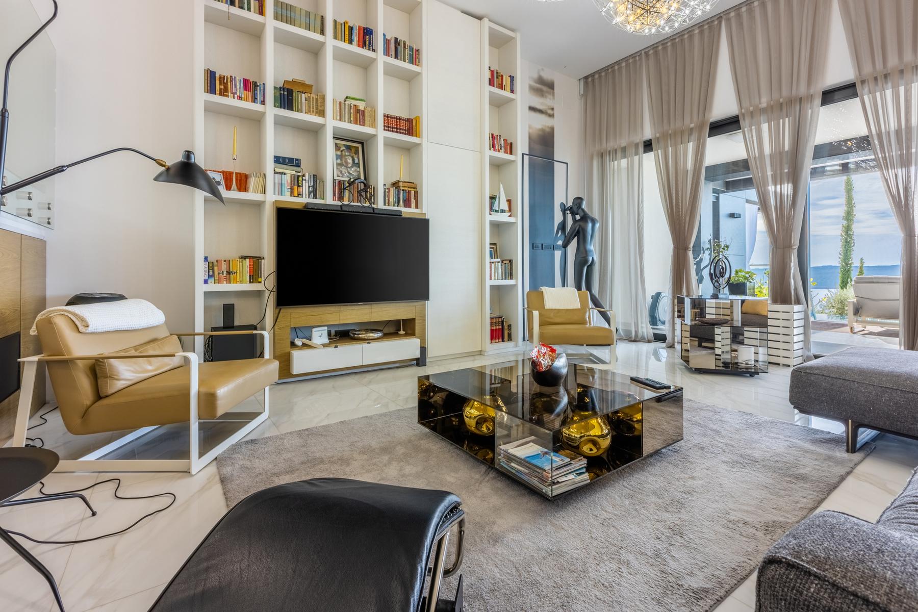 Всеки елемент от този дом свидетелства за обмислен архитектурен проект, който съчетава елегантност с удобство при ползване. Това е място, където луксът се среща с природата, предлагащо спокойствие и уединение в една от най-красивите крайбрежни локации в Хърватия.