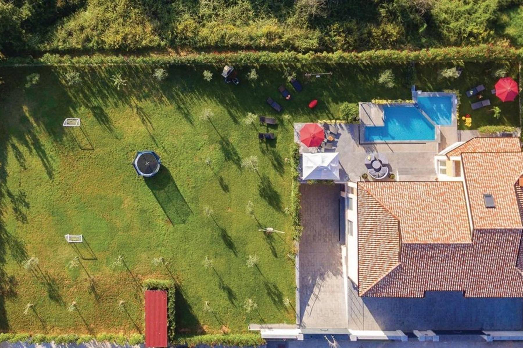 Домът предлага просторни и функционални интериори, отлично пригодени към различните нужди на обитателите. Помещенията са разпределени така, че да осигурят комфортно ползване на целия обект. Вилата разполага с няколко бани, които гарантират удобство дори за голямо семейство или гости. Парцелът е поддържан и предлага много пространство за релакс или срещи.