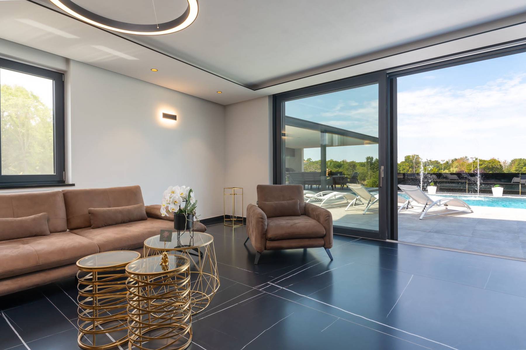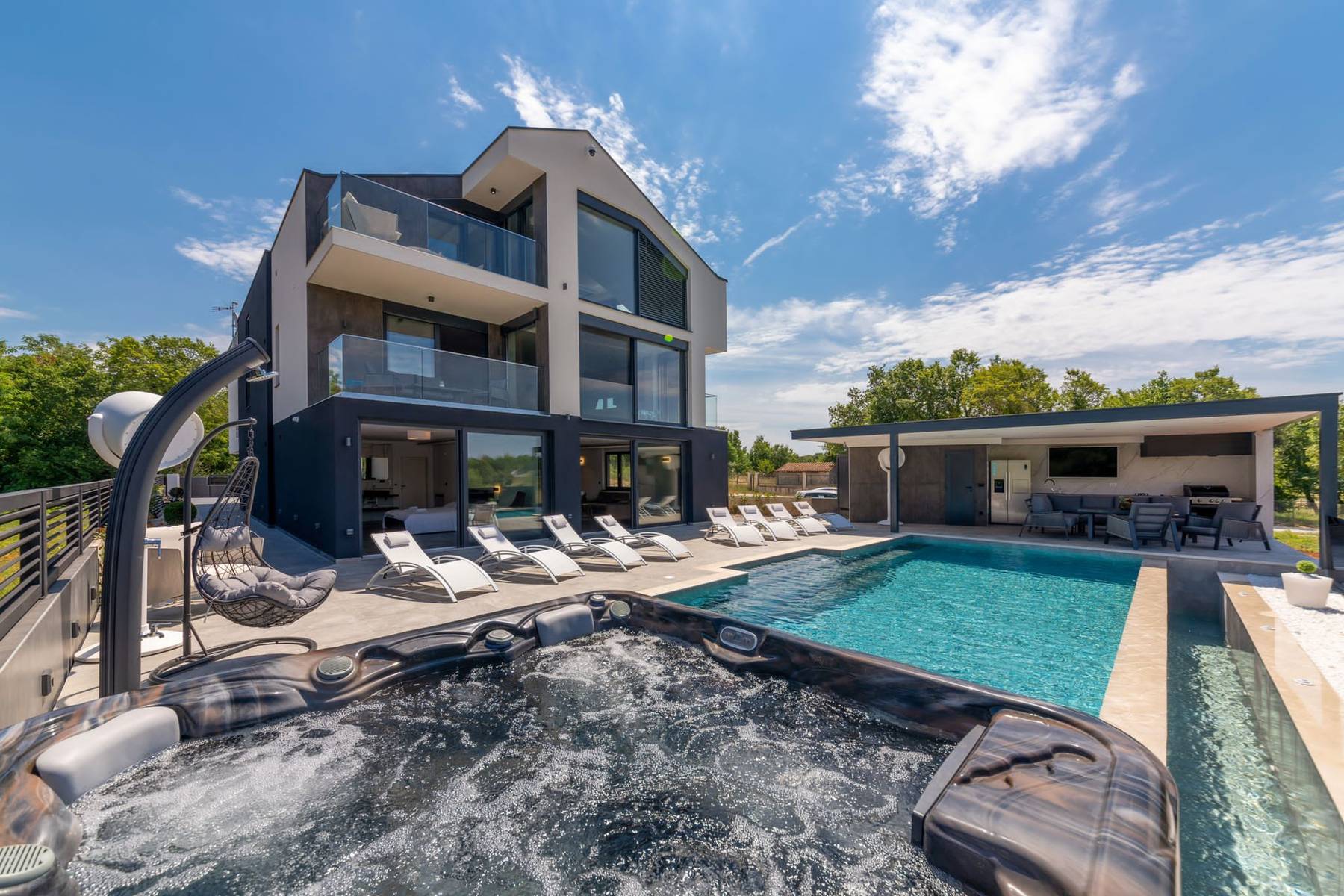 Изключителна резиденция, която хармонично съчетава модерен стил с функционалност, разположена в зеления район на Фунтана. Този обект осигурява комфортни условия за живеене дори за по-голямо семейство или за хора, които ценят пространството и уединението. Над половин хиляда квадратни метра полезна площ предлага множество възможности за аранжировка и отдих.