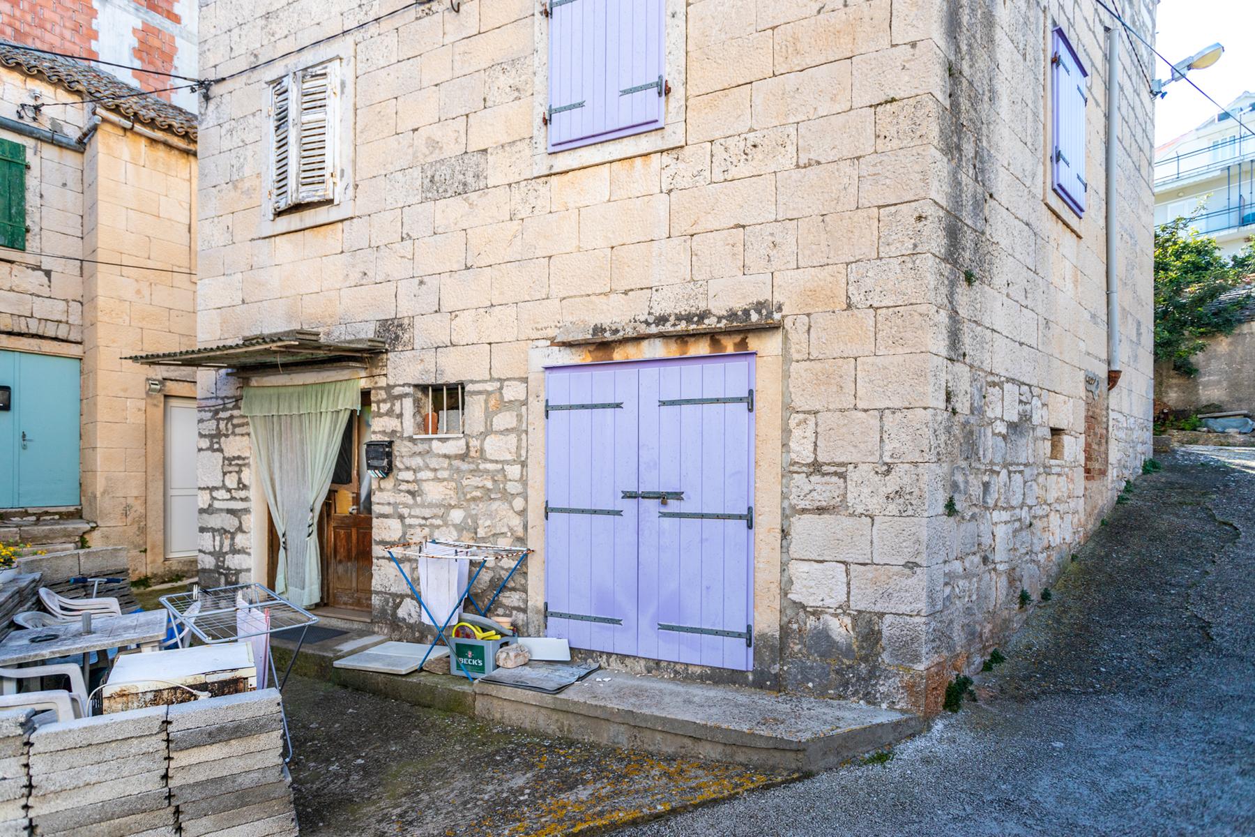Остров Вис е изключително място за хора, които ценят спокойствието и близостта до природата. Това е идеалното местоположение за дом, който може да бъде адаптиран според личните нужди. Каменният полу-дом е разположен в тиха част на острова, само на сто метра от пристанището и крайбрежната алея Рива. Имотът има обща площ от шестдесет и шест квадратни метра, разпределена на три етажа. Всеки етаж е около двадесет и два квадратни метра, което предоставя голямо пространство за оформление. Сградата се нуждае от пълна реновация, което дава свобода за персонализиране на пространството според собствените очаквания. На партерния етаж има търговско помещение с отделен вход, което създава възможност за бизнес или създаване на зона за отдих. Този имот е отлична инвестиция за ваканционен дом, осигуряващ близост до морето и очарованието на традиционната каменна архитектура.