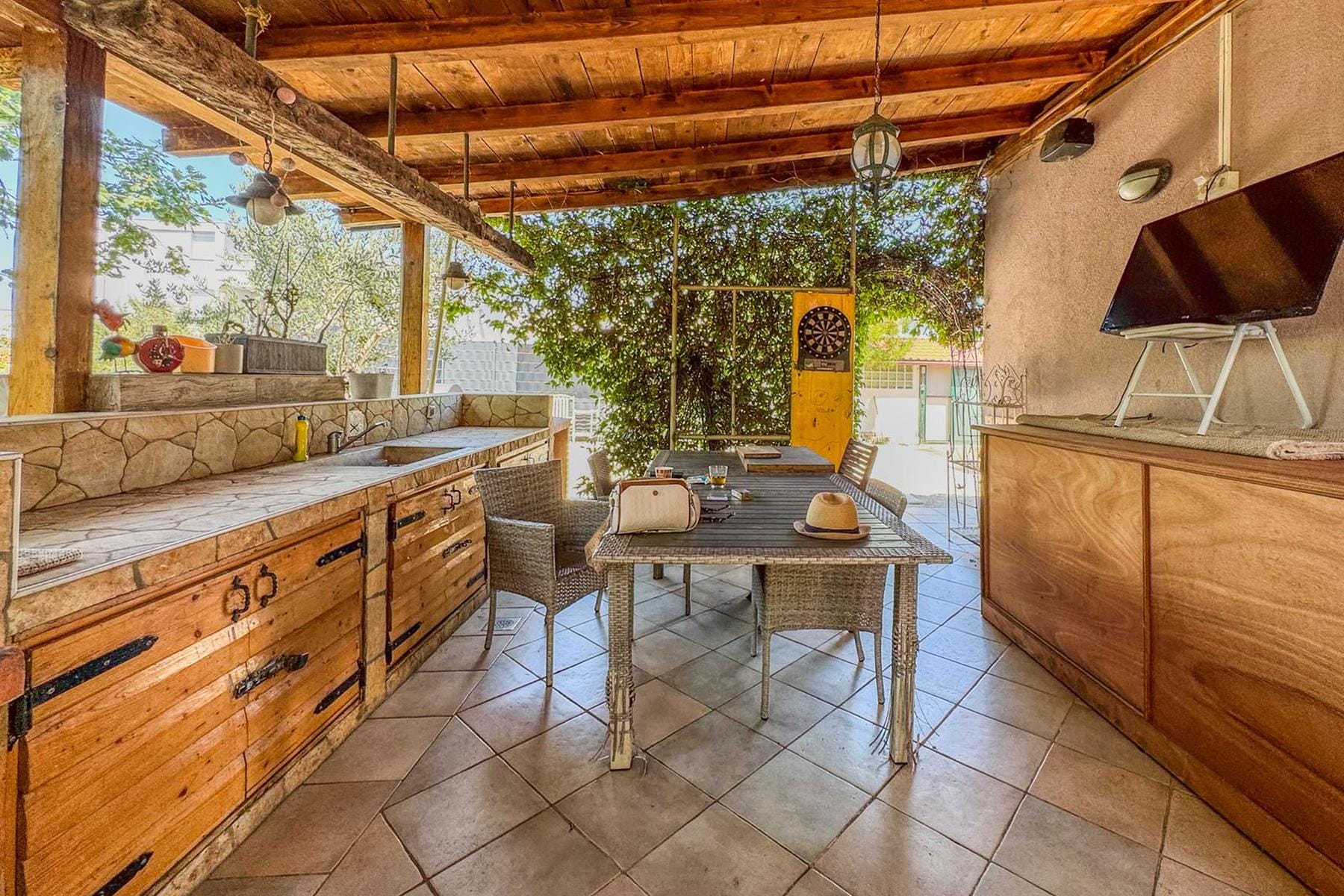 Околността около къщата е спокойна и зелена зона, в която лесно може да се намери тишина и лично пространство. Недвижимостта е подходяща както за семейства с деца, така и за хора, търсещи спокойно място за живот, както и като отличен обект под туристически наем. Близостта до морето и атракциите в региона представлява допълнителна стойност, която повишава комфорта на живот.