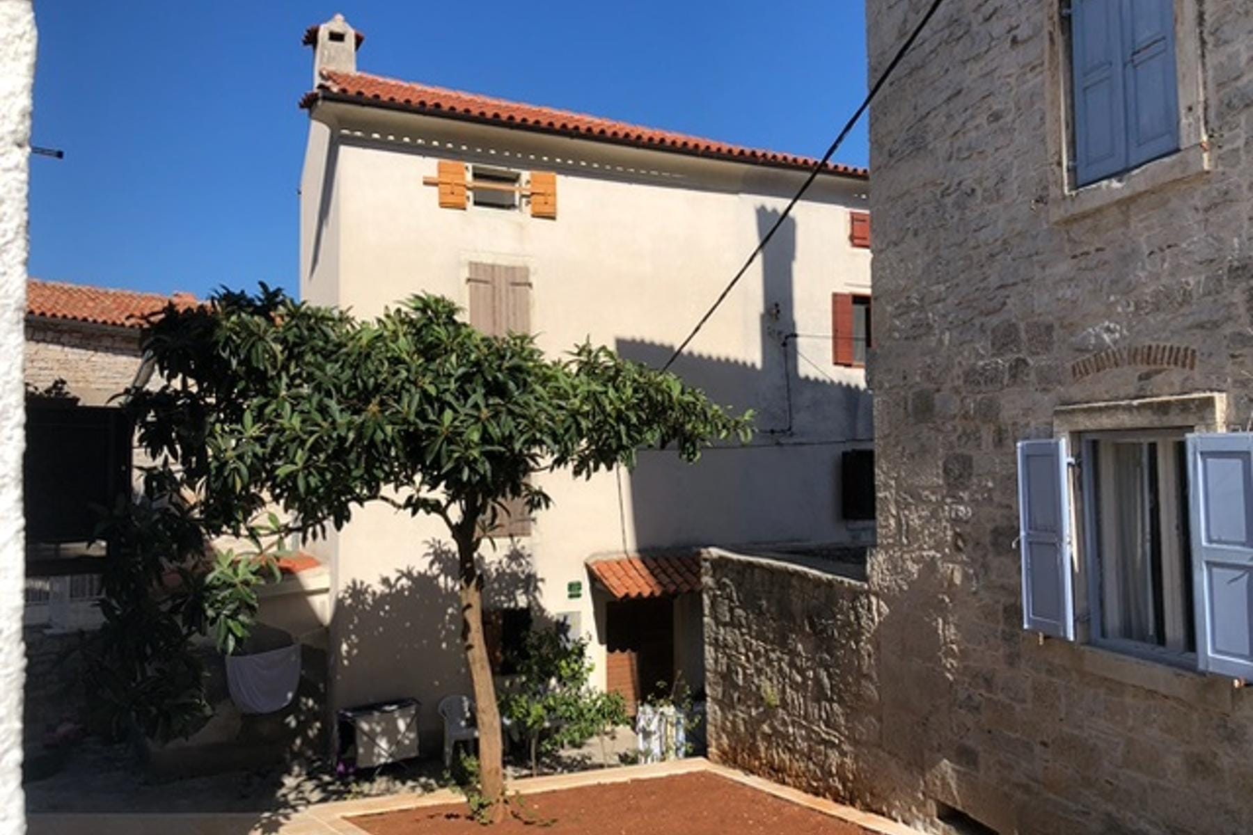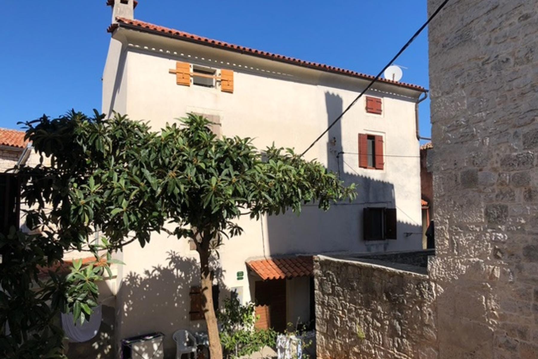 Интериорът на къщата се отличава с топли, естествени материали и хармония в пространството. Каменните стени и характерните детайли създават уютна атмосфера. Всички помещения са светли и добре осветени. Малкият парцел позволява създаването на градина или интимно място за отдих. Близостта до местни магазини и кафенета прави ежедневието удобно. Този имот съчетава спокойствие с достъп до необходимата инфраструктура. Малкото разстояние до крайбрежието позволява ежедневно да се наслаждавате на красотите на Адриатика.